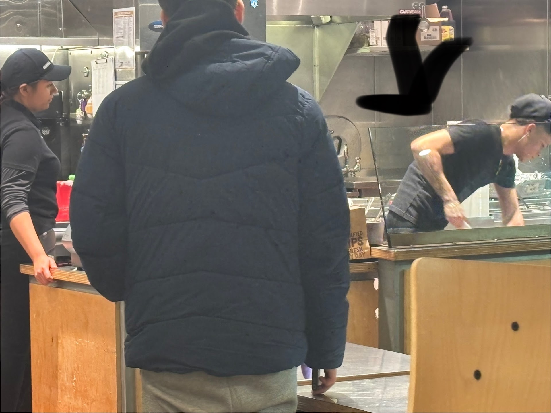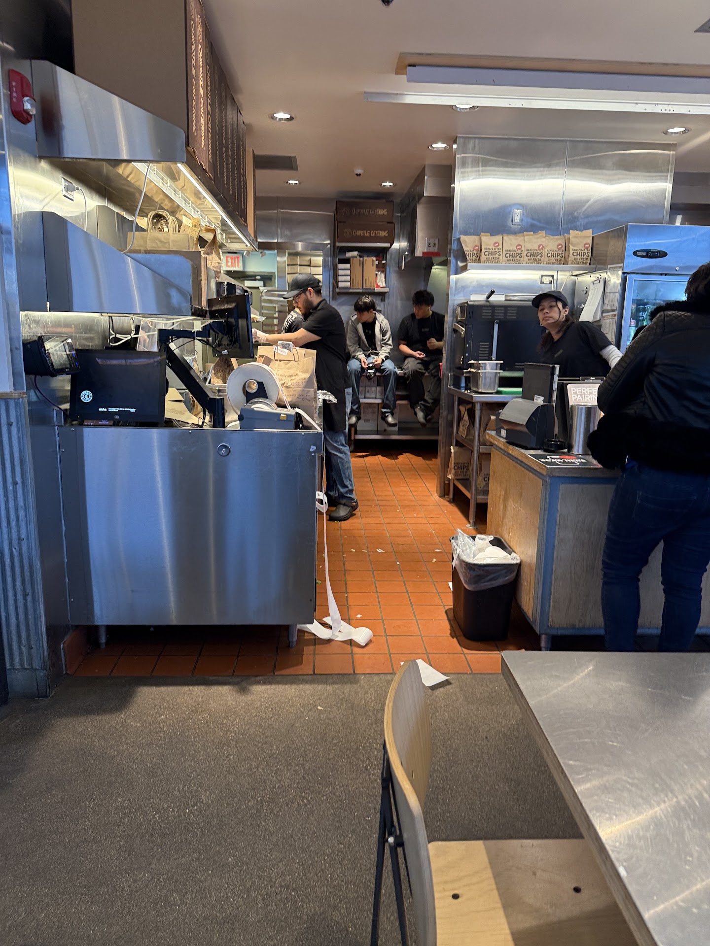 Read moreNow I try my best to not right bad reviews but this establishment pushed my limits. I want to start off this review by saying that my experience was mostly caused by the people working at this specific chipotle so this review should only be taken into consideration if you’re planing on going here. I was on the road when I was getting hungry so my family decided to stop at chipotle. We ordered take out so that we could get back on the road quicker. But at first impression this place was a mess. Little did I know that it was much MUCH worse. When I walked in my family’s food was not ready so I went to the bathroom. I walk into the first bathroom and there is sewage water EVERYWHERE. This was extremely disturbing so I walked to the second bathroom that was not much better but adequate for the circumstances I was in. I walk out and the foods done so I take it to the car my family opens there food and we realize that my family doesn’t have the right food. All of our chicken and steak was gone.(keep in mind we ordered a quesadilla and tacos with chicken and steak) We walk back inside and I see a man scrubbing the floor with a mop and water and cleaning supplies EVERYWHERE. That’s a food hazard if I have ever seen one. Regardless I make my way to the counter to see a woman standing there I say politely “ hi um my taco didn’t come with steak and the quesadilla didn’t come with chicken” she gives me a chicken and steak container so we walk out. Not only did I have to stuff my chicken into my quesadilla that was literally falling apart but it was night so I couldn’t see AT ALL.. safe to say this was not a good experience I won’t come back...