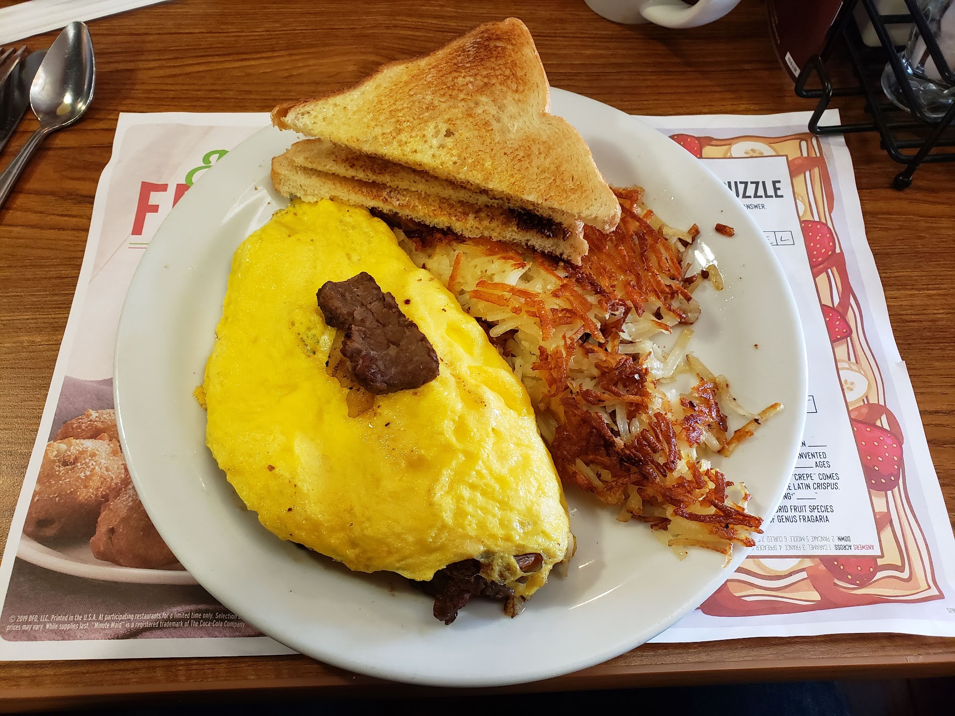 Read moreWe had stopped in on Saturday with a party of 7 for a family lunch. The hostess was very nice and we were sat at a table timely. Our waitress attended us timely and took drink orders but wanting our meals orders right away when we hadn't even really looked at the menu. 3 of us ordered coffee there was no sugar at the table, reached over to a neighboring table, no sugar there either. My husband went and got sugar from the hostess. We had ordered nachos for an appetizer, they were not appealing at all when set on the table. But they were tasty just horrible presentation and looked just thrown together. Small plates that were given for app, 4 out the 7 were dirty. Still no silverware, my husband went up to ask for some from hostess. Apple juice was spilled, had no napkins to clean up, waitress walked by. Husband went and got napkins, wet napkins sat in middle of table from mess entire visit. We waited (with 3 young children) for about 30-40 minutes for our food. One plate was set down was not ours, server then grabbed from our table to bring to correct table. One of the kids meal was missing her bananas that came with french toast, we had to ask for them as well as the grapes we had ordered as add on, My husband was missing his avocado he had ordered to be on his hamburger, asked server for it. Server brought out after he was done with his meal. The bun on the chicken sandwich was falling apart and dry/stale did not finish. Our other part of our table had order 2 skillets, did not receive the toast that was suppose to come with both. The one skillet we did not get until about 10-15 minutes after we all got our dishes also missing the avocado that was ordered for on top of skillet. (She asked for a box to take it to go as we were all done eating and annoyed). The manager did come over after my husband went to complain, apologized she did not know of the issues and did comp us the skillet that came out last, and his burger, only reason I am given a 2 star. After receiving check, we had to have them correct the bill taking off the avocados we did not get and apples as well. Bill was $55 plus tip (after the two meal were taken off) for meals we did not enjoy with all the issues we had that was not taken care of. Will not be returning to...