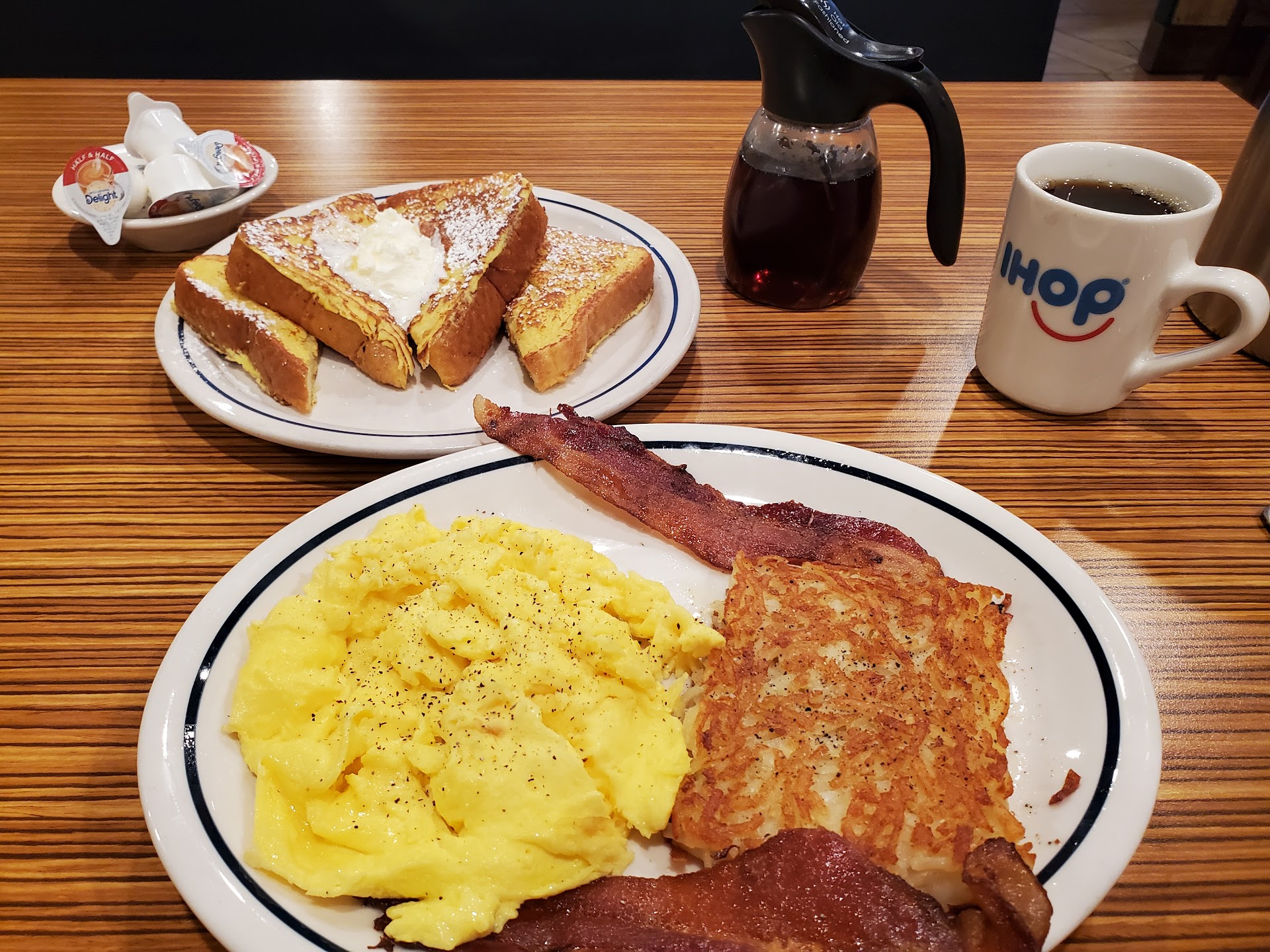 My husband seemed to enjoy his meal except for the questionable bacon. I on the other hand ate only my hashbrowns that hadn't ended up being contaminated by the raw egg. Luckily my one egg was done and my pancakes were on a separate plate. I kept wondering where is the sugar free syrup or the syrup caddy. (Maybe they don't do syrup caddy due to the pandemic and supply issues?)