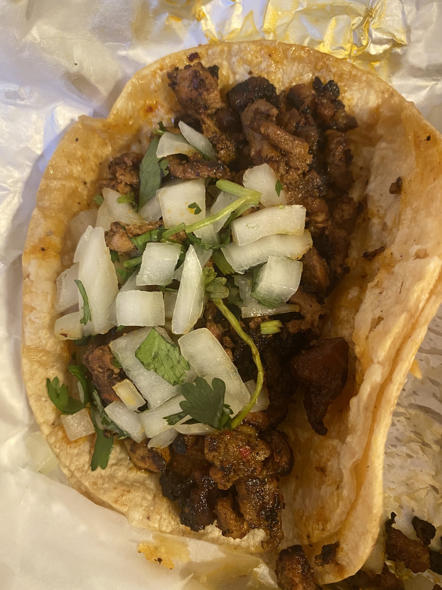 Read moreBest thing about this taco was the onion. Tortilla and meat were both VERY DRY. I don’t think any cook (beginner or trained) could turn al pastor meat to a black crisp, which leads me to believe the meat was pre-cooked and then re-heated :/