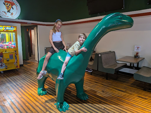 I think it was the owner working and he was super kind. He let the kids get on the green dinosaur and took some pictures of us.