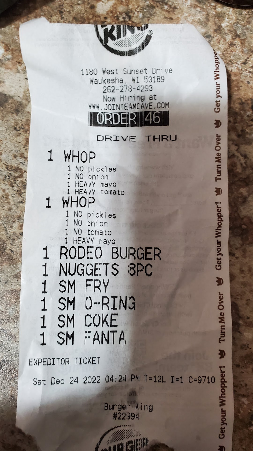 Went inside and waited 5 more minutes, then the moment I just ask for a refund, my order was sitting by the drive thru window with no receipt, cold.