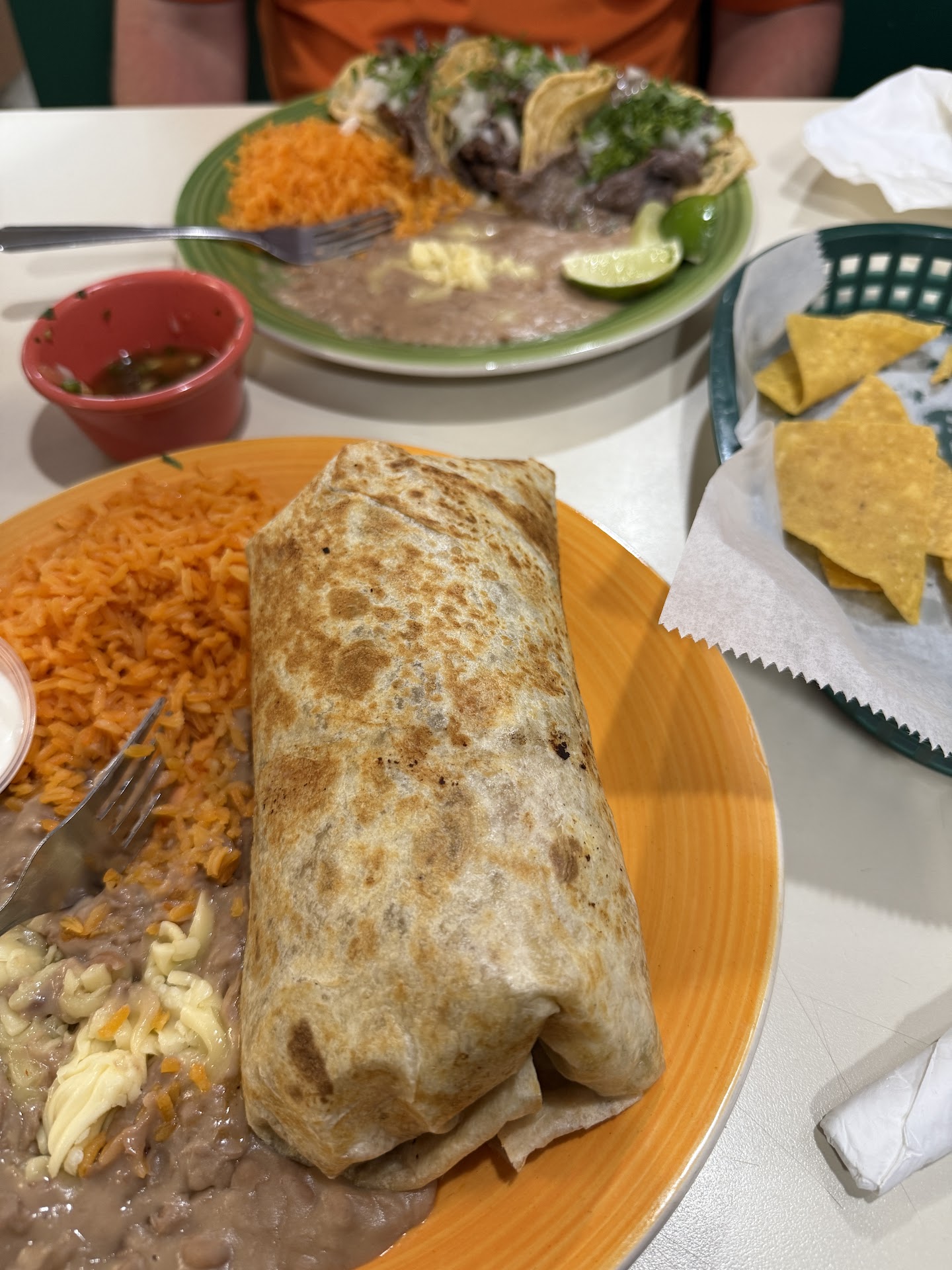 Fresh pico de gallo served with warm chips is complimentary when dining in. INCREDIBLY flavorful carne asada steak as well as the rice & beans. Meat seemed to be of a high grade with no gristly bits (those stringy weird meat chunks).