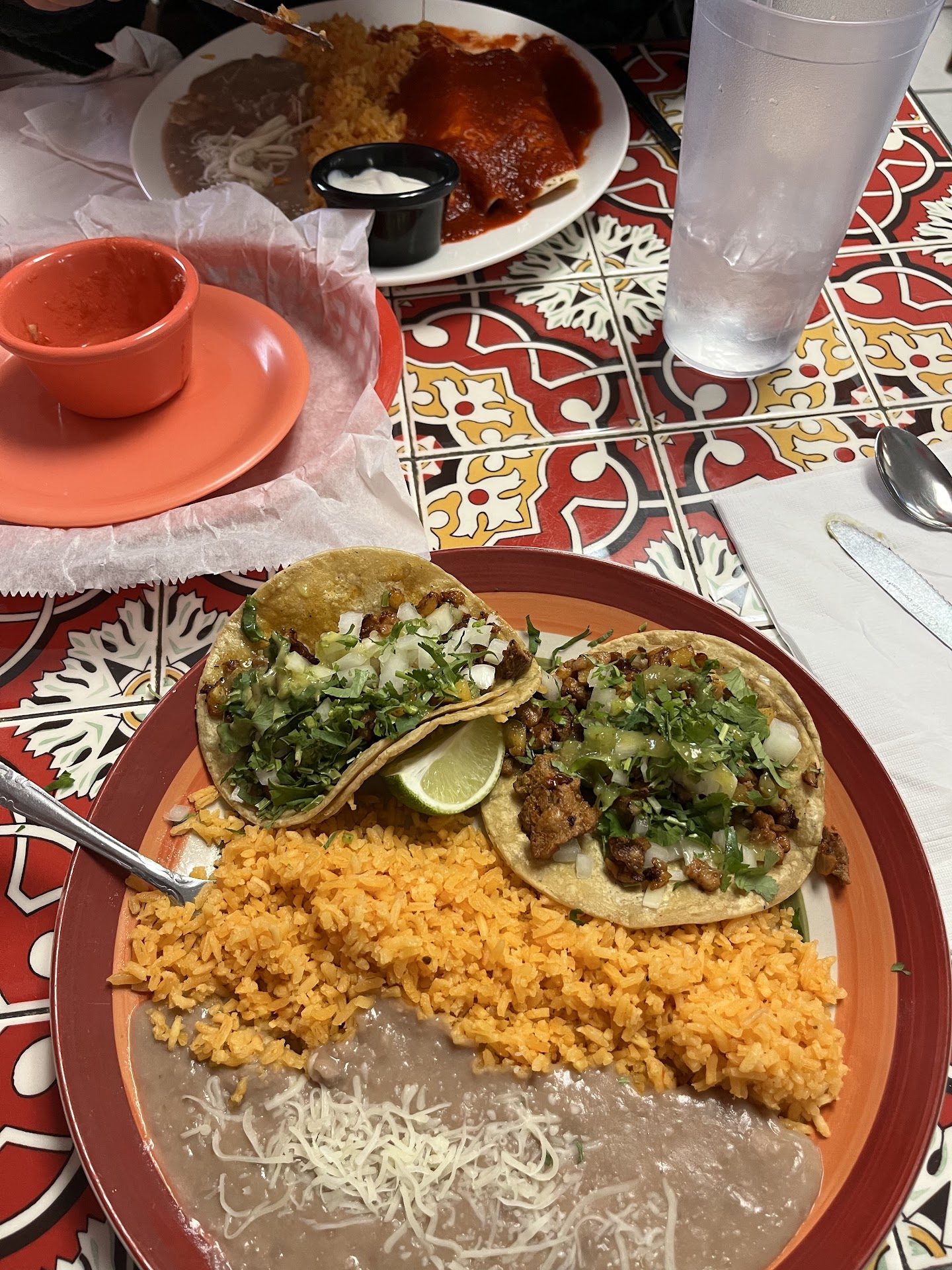 Read moreOur waiteress was very friendly n kind. What I didn't like was.......1st - when I sat by the register. I know they need to keep moving in out of their area. But they had no respect that I was sitting there. They would move in there so fast n didn't care if they hit you all the time I sat there. I had to move ao I won't be getting hit.If that's the case. Then why would you put a table there?! The table there is for 4 chairs. Then you should have a table there for 2 chairs Instead n Not for 4 chairs. 2nd - My steak taco had No flavor. My Al Pastor taco meat was cut for little babies as well for the pineapples. Had little flavor not much but something. 3rd. Went to use the bathroom. No Toilet paper. I checked into their white cabinet furniture stand they have. No Toilet paper. Only their hair brushes n stuff. It's like they do their hair there at work place. 4th - What kind of a Restaurant is it? Mainly is more American food than Mexican food. Even to advertise in the internet. All pictures is American food. We never been there before. We looked at the Reviews n saw it was good. We went there to celebrate our son's birthday. We Did Not like it. We won't go back ever again. It was really...
