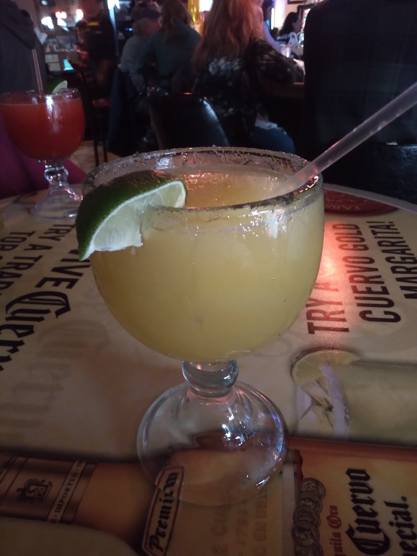 The margaritas are delicious. That's a blended mango. Medium. They have 3 sizes. And they have many flavors.