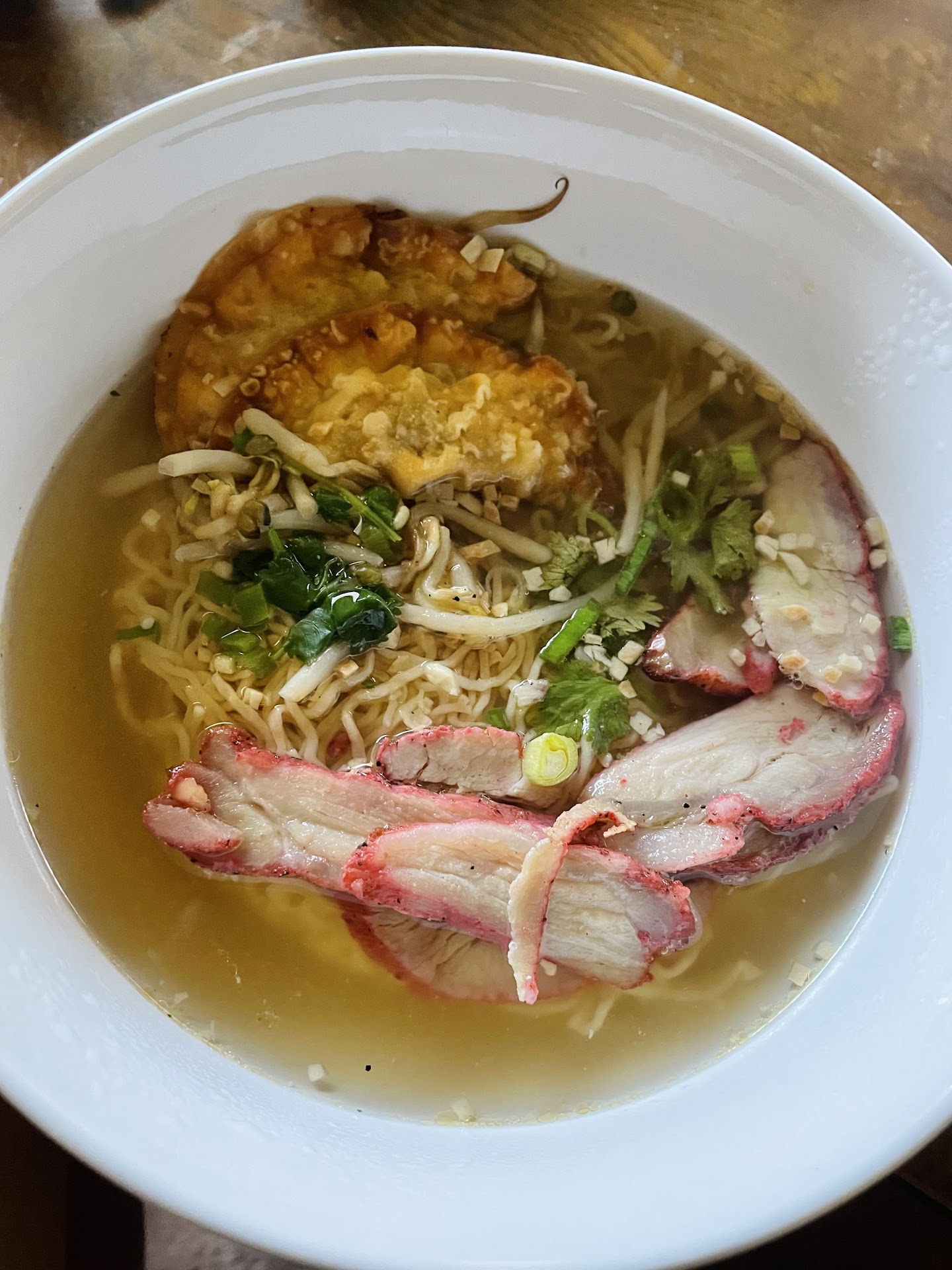 Khao Soi with chicken This dish is very popular in Chiang Mai (northern thailand) and very difficult to find Thai restaurants in WI, there’s only one other place that has this (rice by kin and roll), and Mom’s Kitchen does the broth better - the broth isn’t too watery or thick full of flavors, tho more garnishes ; red onion, green cabbage and bigger crunchy noodles on top would have made this dish perfect! BBQ pork noodle soup The noodle and bbq pork itself was good, noodles were not saggy, however the broth itself was a bit bland - flavor profile was there but missing a punch.
