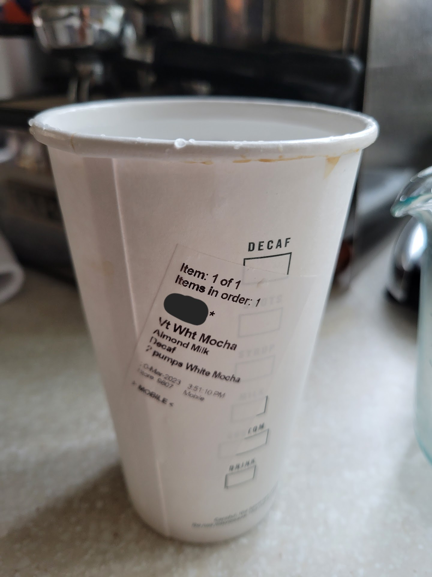 However, despite wishing someone else had been at her post this morning, my drink was perfect. Made just right, and heated extra warm. The wait was a wait, but it was purposefully and smoothly moving...