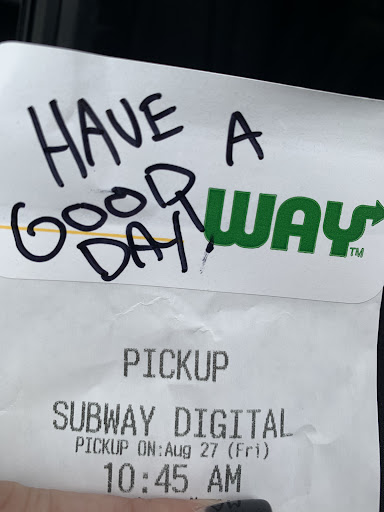 Placed an order for pickup off the Subway app for a tuna salad- salad today. My order was ready promptly. When I walked into the door the store looked very clean and I was greeted by both the gentleman working! My order was on the pickup shelf waiting for me. They let me know the dressing had changed so they had placed it in cups on the side for me to try- I was very impressed by the thought that went into that small step. Very much appreciated on my end. Grabbed my salad and my lemonade from the cooler where it was staying cold. The receipt taped to my order had a hand written message of “have a good day” that one of the gentleman took the time to write. Another small thing that was noticed and did not go unappreciated. I will be sure to enjoy my lunch and the experience I received from this subway! The employees there seems to have an awesome understanding of customer service and previously working in food service I can appreciate the little things they did for me and my order. Had to take the time to write this...