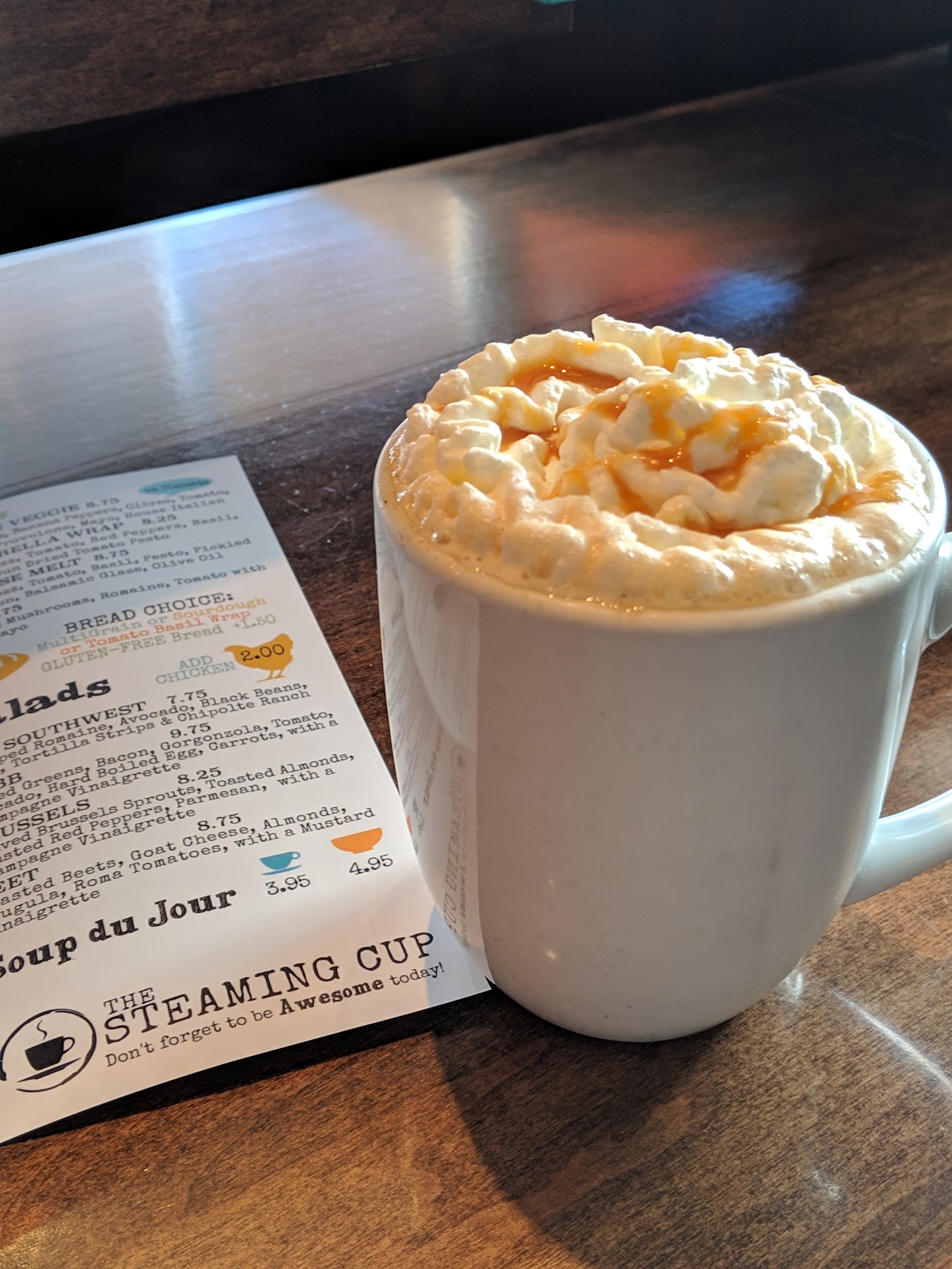 The Steaming Cup has the best food I've ever had at a coffee shop. In my experience, coffee shop food has typically been bland, so the first time I ordered food from here, I wasn't expecting much. However I instantly realized that this food was full of flavor and quality. I simply cannot believe how amazing the food is here, I can't stop ordering it. The Breakfast Sammy and the chicken caeser wrap are my favorites, and I always order a Belgian waffle too. Even the Belgian waffle comes with real maple syrup. I don't know what other coffee shops nearby are going above and beyond like that. The atmosphere is also great and I can't wait to sit and dine in-person. Haven't tried the coffee yet, but I'm sure it's equally as great. Seriously, hats off to all the staff, management, and owners of this place. It's so hard to find such quality food these days at such an...