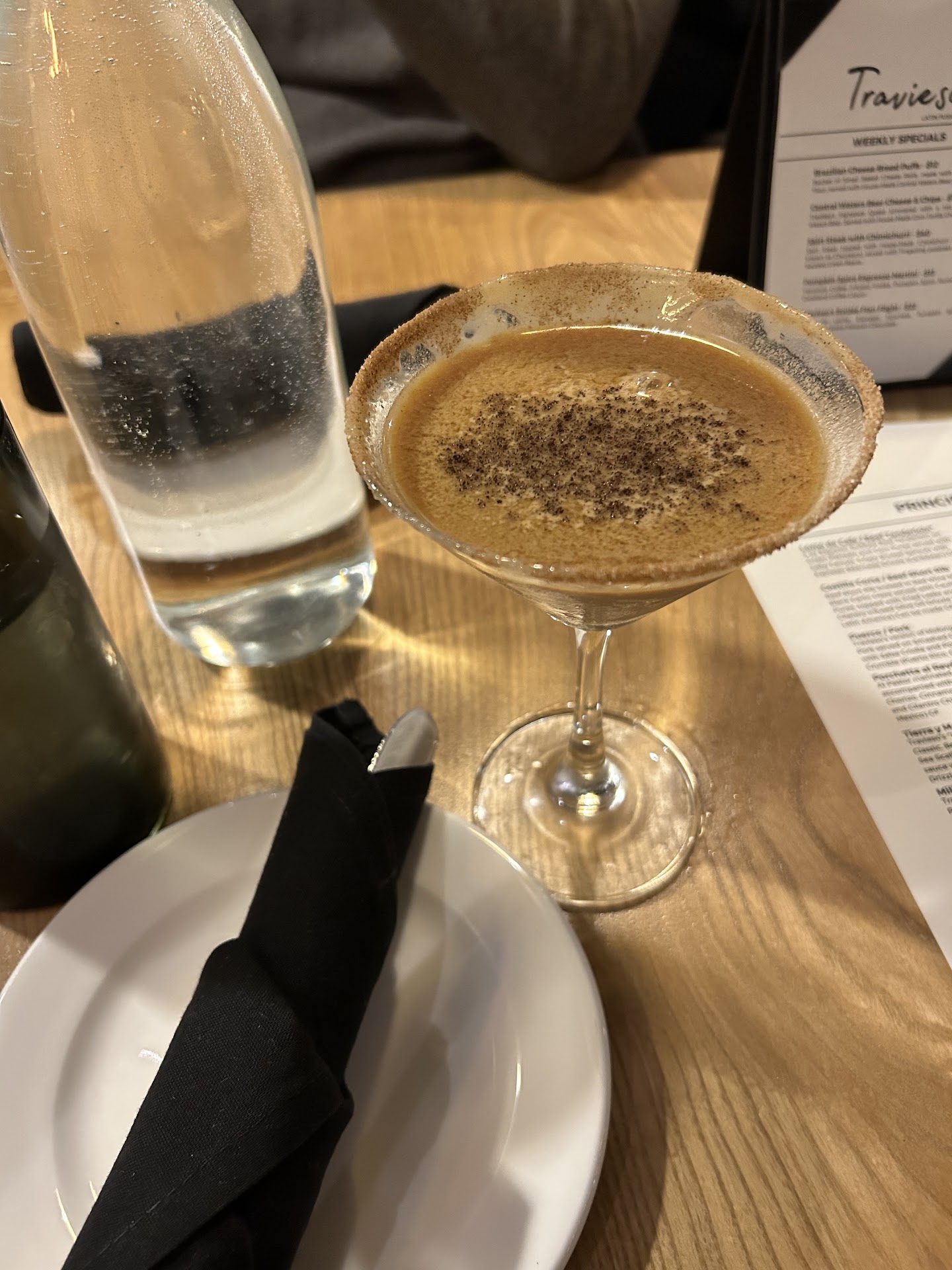 Made a reservation for Saturday night. The hostess was absolutely wonderful and the stand out star of the night. Our waitress was sweet but only checked the table once to see if the food was good after not delivering it herself. The espresso martini tasted like I was eating ground up coffee beans, I couldn’t even finish it. It ended up separating before the entrees came out and made it look like oil and water. The other drinks on the menu looked amazing so next time I would stick to the margaritas or mules. I ordered two appetizers- the octopus and the street corn. The octopus was warm and the corn was cold, I think the dishes would’ve been better if that was flipped. The octopus was a little chewy and was drowned out amongst the spices. It almost tasted muddy which ruined the dish for me. It was over powered by over seasoning which made the dish lose any sort of coherent flavor. The corn was average but beautifully presented. For entrees I ordered the skirt steak and the scallops. The steak was served standard medium rare yet it was more medium well done. I found the steak to be incredibly chewy and tough but the potatoes and green beans were okay. The scallops were served over braised pork belly accompanied by pickled onions, carrots and what tasted like kimchi. It felt like Mexico met Asian fusion and not in a good way. The scallops themselves were well cooked just over seasoned and slightly too salty. The entire entree felt like it was too much- the pork kimchi and vegetables on their own would’ve been amazing but adding the scallops and aioli turned it into a mess of flavors that contradicted themselves. The brussel sprouts served with the dish were charred to a point of what I would call burnt. I was unable to chew or swallow them. I didn’t try any dessert however the table next to me was enjoying a Brazilian cheesecake. Overall the ambiance and service was good but the food didn’t hit its mark for me. I think I’ll give Travieso another chance later this year before I make my final judgement but for now everything about it falls just about...