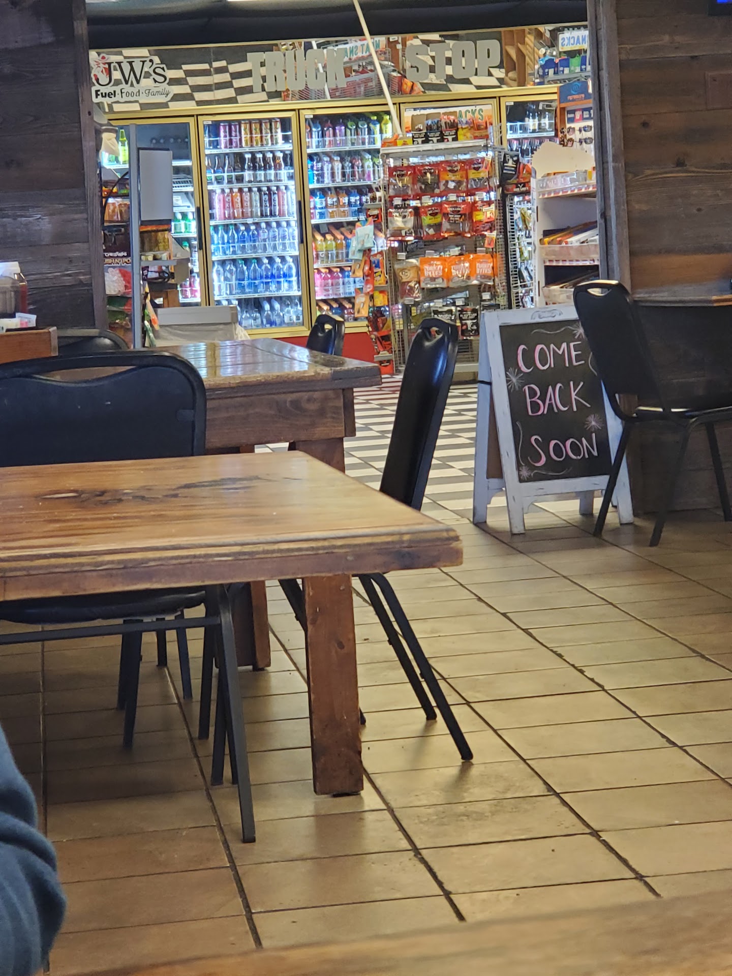 Went and sat at a table in the restaurant where flies kept landing on the table with food crumbs (burnt pizza) and three employees pretended that I didn't exist. Supposedly the food is decent there, but you can't find out if the help doesn't acknowledge your existence. Someone at the truck stop DiD acknowledge my existence though. They called the law to come and observe me because male truckers and some truck stop employees love to profile female truckers. We are not lot lizards. We are doing the same job as a man, making a legal living. Stop profiling your customers and fellow truckers. You should be arrested for filing a false report. Imagine the trooper having his time wasted, being called to watch a female trucker eat chips and dip in her truck because she's not good enough to be served food in the restaurant. In the meantime, real criminals are committing road rage and assaults and wouldn't know how to drive if they had a detailed manual. I gave two stars for the sweet and kind Native lady at the register who asked if I was having a good day. She's the only reason it was good. That and I managed to find a spot to park in the Jurassic 🦖 pothole-filled lot to take a 10-hour break. Fill up the truck destroying potholes. There's a pile of gravel there to do it, but I guess there's not a hard-working male employee in there that is not too lazy to do it. I am very angry that I had to eat junk for dinner and had the law called on me for no damn reason. Next time, I will bypass...