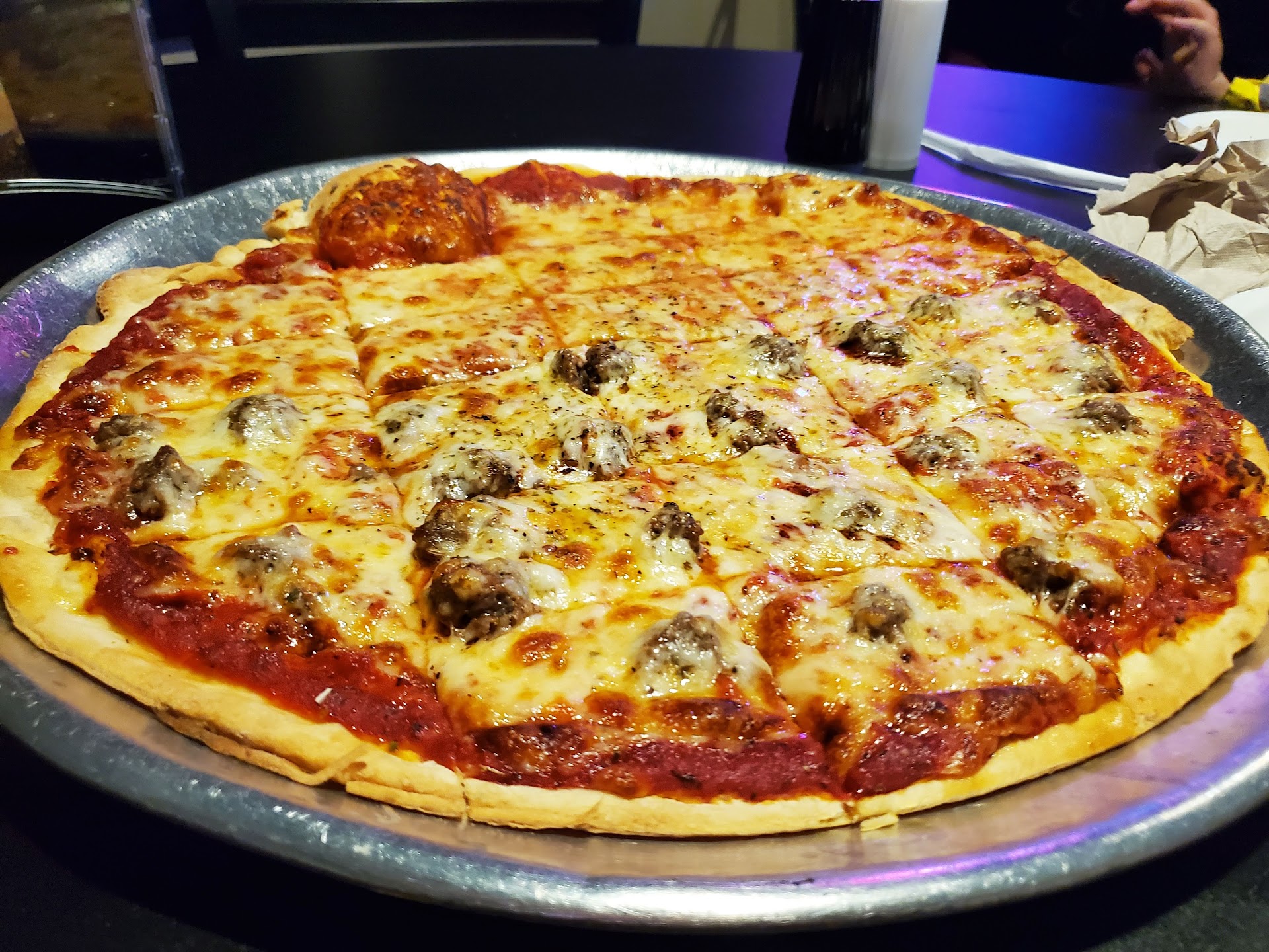 The bar is open for drinks and dine in service. We went twice during our 5-day stay in Wausau, but some in the family would've been ecstatic to go every night. The pizza is served with a thin crust cut into small rectangles (not quite cracker thin, but close to it). Sauce is mildly sweet, and the cheese to meat ratio is perfect. But the star of the pizza is the seasoning they put on top as a finisher. Really delicious 😋