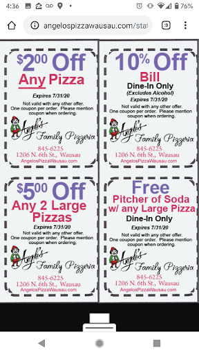 The bar is open for drinks and dine in service. We went twice during our 5-day stay in Wausau, but some in the family would've been ecstatic to go every night. The pizza is served with a thin crust cut into small rectangles (not quite cracker thin, but close to it). Sauce is mildly sweet, and the cheese to meat ratio is perfect. But the star of the pizza is the seasoning they put on top as a finisher. Really delicious đ