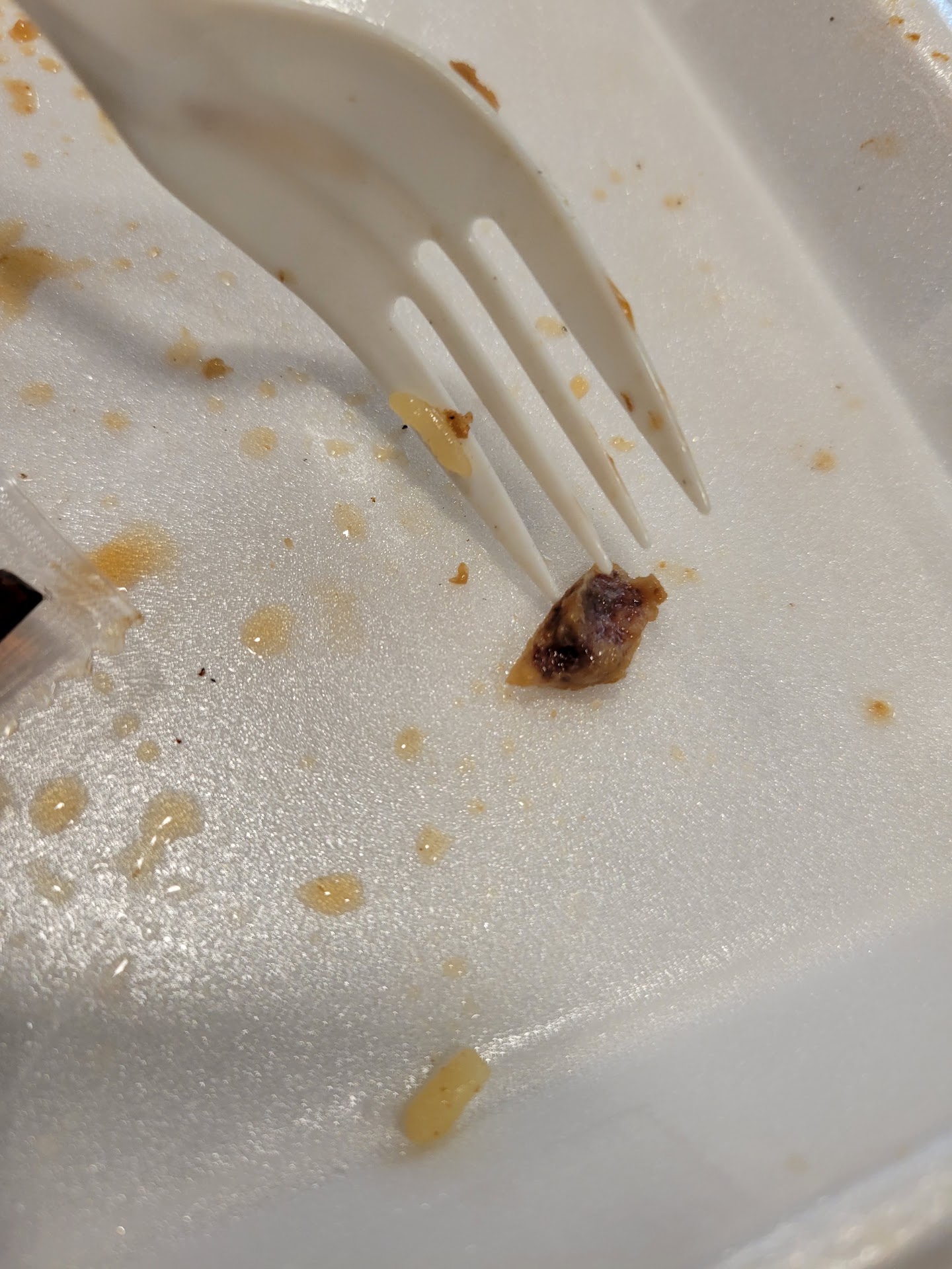 Stayed at the hotel nearby and didn’t want to go too far to eat. Got the beef and chicken bourbon combo. Was offered some hot sauce, which looked like chili flakes in oil, so asked for two to go.