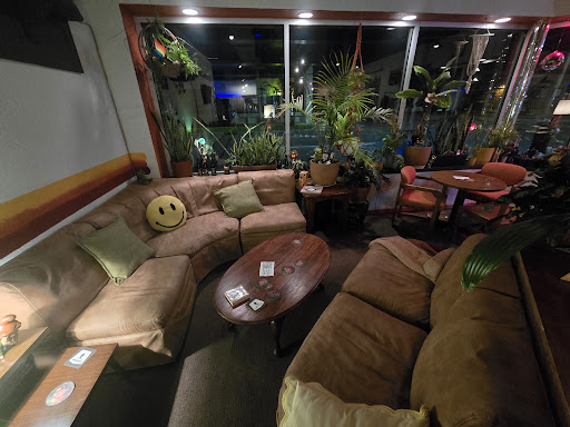 The way they decorated the space was so fun. A dinosaur latch hook rug, very 70s, and they had an amazing selection of board games, puzzles and fun books. Super funky and fun atmosphere. Absolutely recommended stopping by, hanging out and grabbing a bite to eat and a fun...