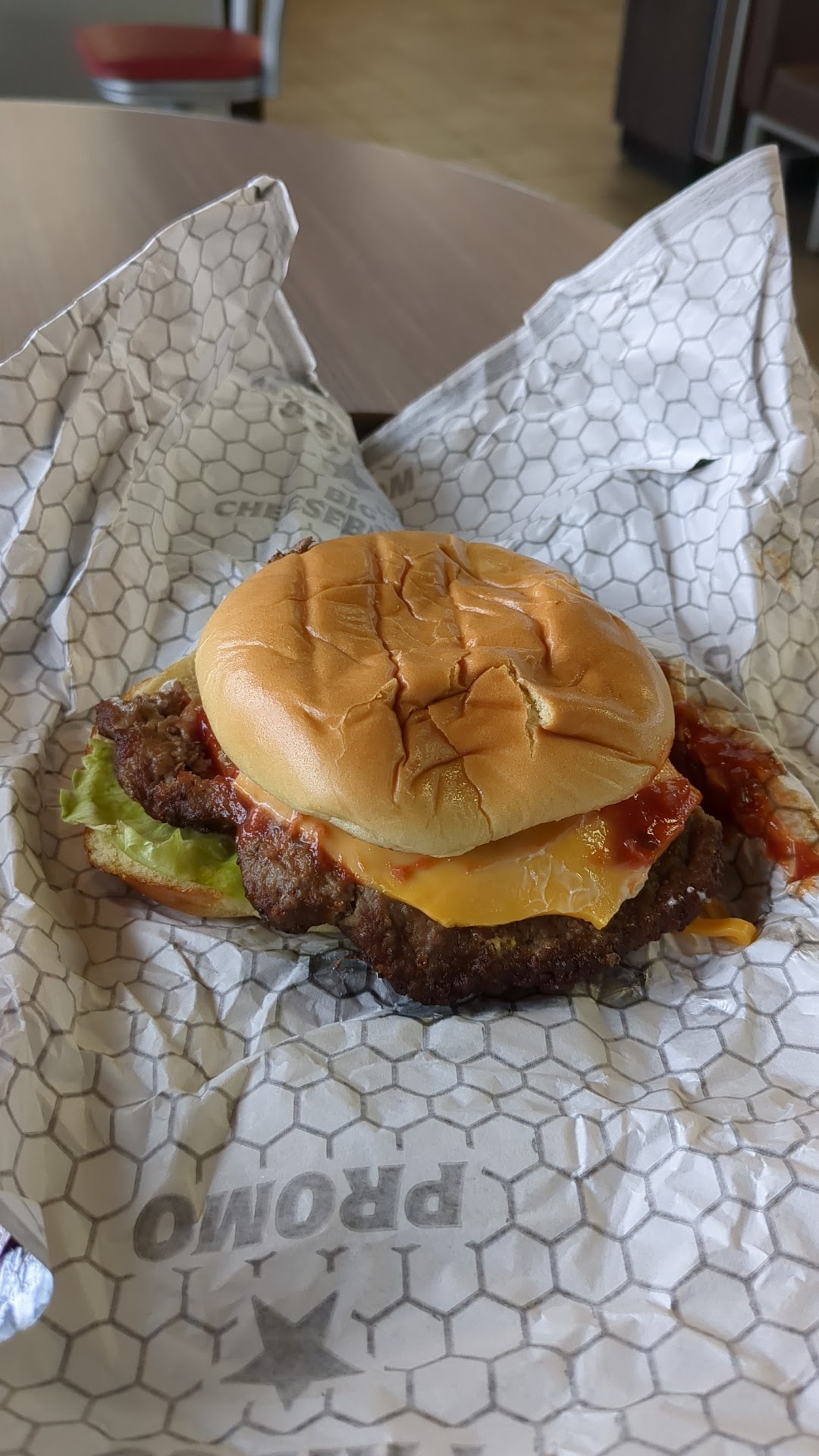 When my food came, I unwrapped the burger and that sealed the deal. Besides one of the worst constructions I've ever seen, the burger was already broke into 3 different pieces, 1 that was outside the bun... Oh and I was the only person in the restaurant at the time, so time was not a factor for the employees....