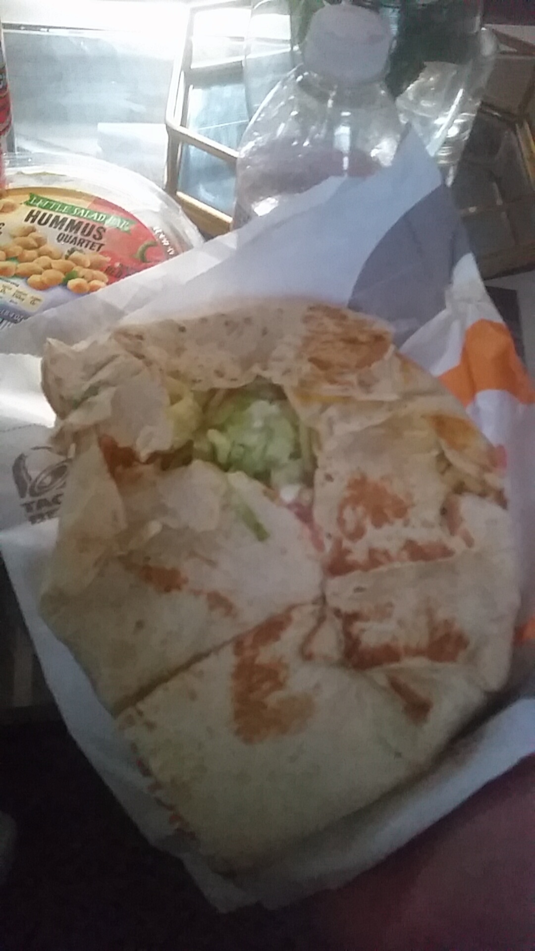 Got home seen that the tacos were smashed like they were punched and my steak quesadilla was made with a ripped wrap. The tacos also were wrapped with like 20 paper wraps. Then basically thrown in the bag. Last time I go to Taco Bell in town. The time was exactly 1:35 when I showed up. There was no reason to do this. Also didn’t give me a receipt. So I couldn’t get a refund. I should of took a picture but I was so upset I just throw it away. There was no point. I hope some people know they get paid for doing their job. Imagine if you went to Taco Bell and this happened to you. There is no reason to do this to your costumers. 35 dollars down the drain just because some people want to be petty. Hey listen I get it I work as a cook either your having a bad day or just want to go home but that is no reason to act. Think before you act you don’t know these people something terrible could of happened to them and then you do this because you think your being funny or think you’ve had a worse day than them. I’m completely given up on Taco...