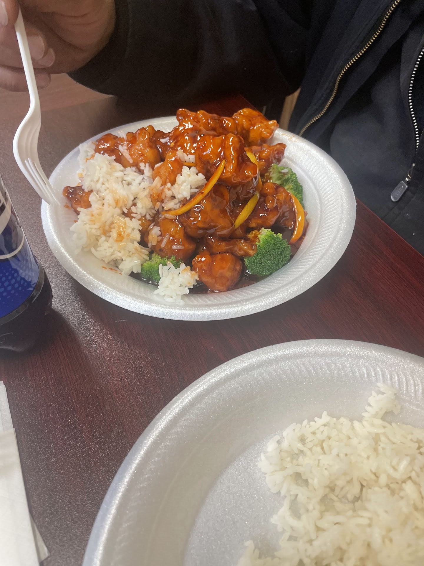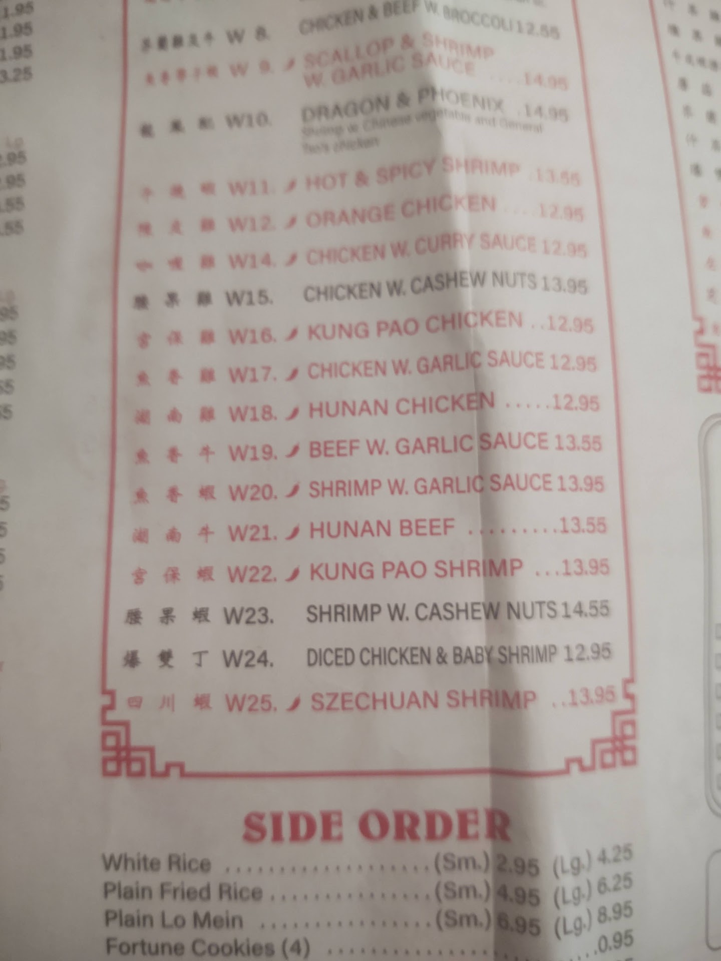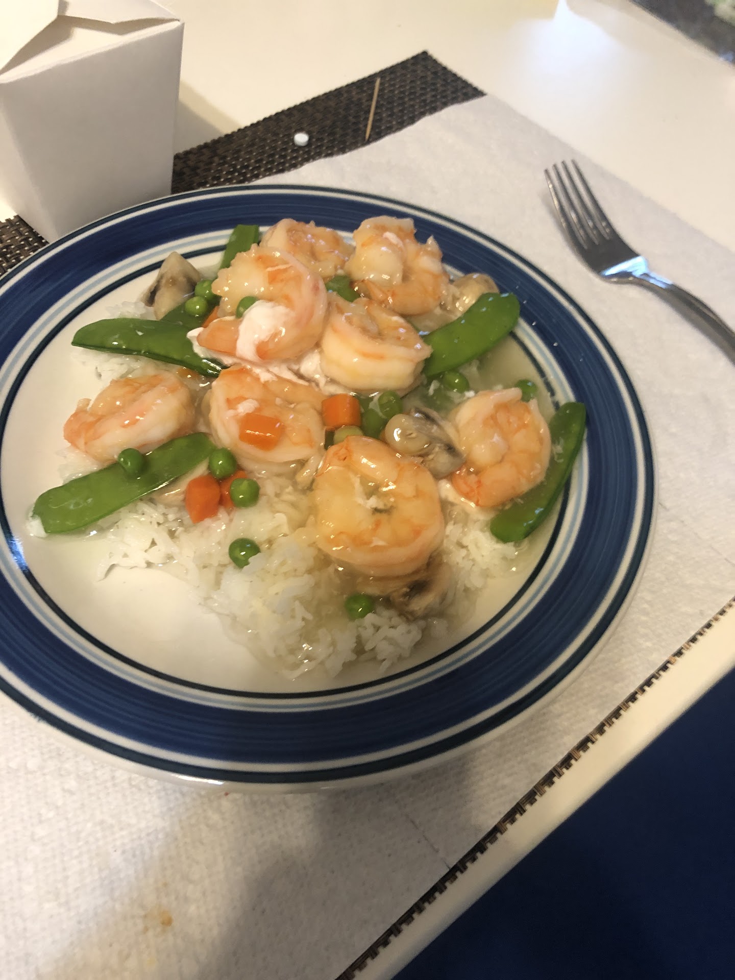 Update Review. Did take out of Large Roast Pork Fried Rice last night. Ordered extra veggies ($1.50 extra). This was by far the worst Fried Rice I’ve ever eaten. The rice kernels were so dried out many of them were crispy. The rice was fried with so much soy sauce the whole dish was dark brown (very unappealing). See the picture. The extra veggies were good, except if I hadn’t ordered them, there would have been nearly nothing. There was no fried egg in the rice. Lastly, the pieces of pork were so small you could hardly see them, let alone taste them. (See the size of the pieces at the top of the plate in the picture!). I consider this really a waste of $10.75 (+ tax). I do intend to speak to the owner as I’m super disappointed.