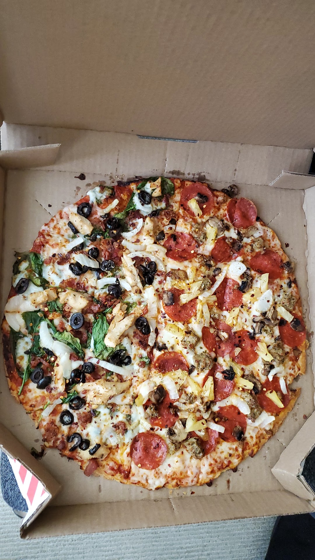 This was embarrassing. My order was over 1:15 late, the staff was very VERY rude and basically threw their hands in the air. Even worse, there was FOOD all over the floor by the oven where it seemed to be falling off the conveyor. There were pizza boxes everywhere. It was like a scene from that “I Love Lucy” episode. Horrible.