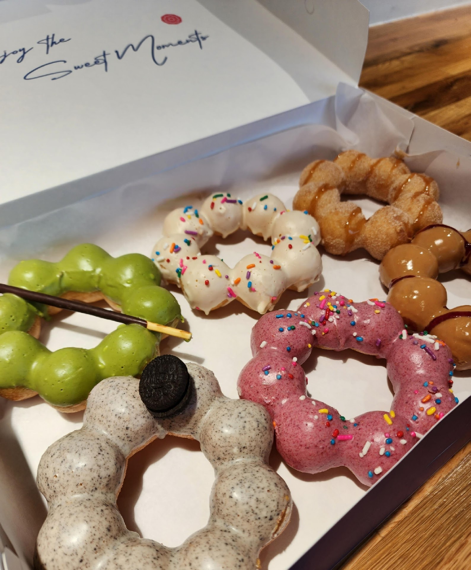 The Korean corn dogs were also great and a very generous size! Loved the side condiments of ketchup, spicy mayo, and honey mustard. There was a 15 minute wait on the corn dogs, but no issue as we started with our donuts and drinks. No. 6 will be our go to, but there are so many options to choose from.