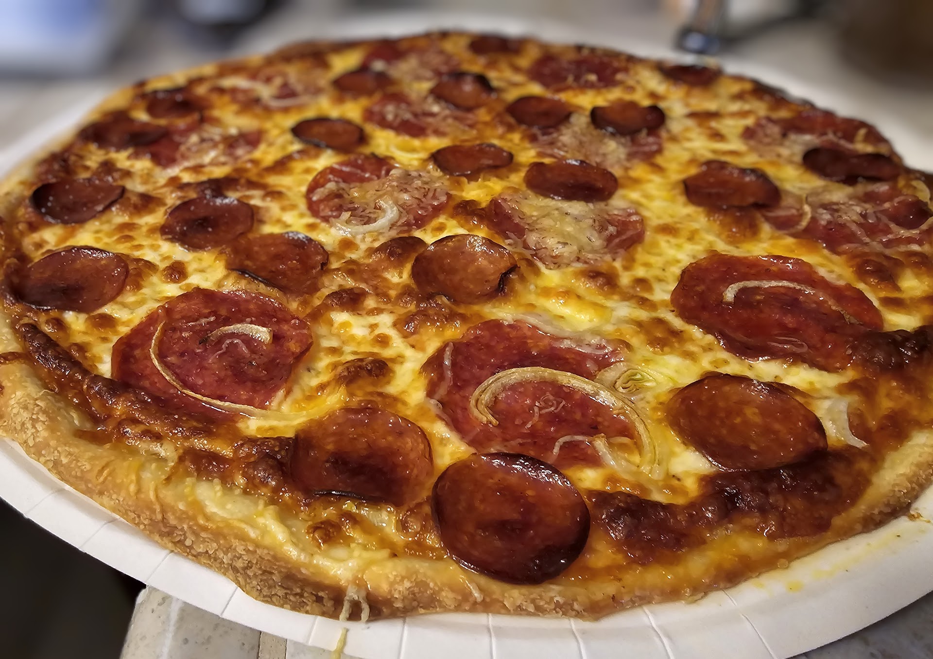 So, like, picture this: a piping hot pizza pie straight out of the oven, with ooey-gooey cheese stretchin' for miles. And toppings? Oh, we're talkin' pepperoni!
