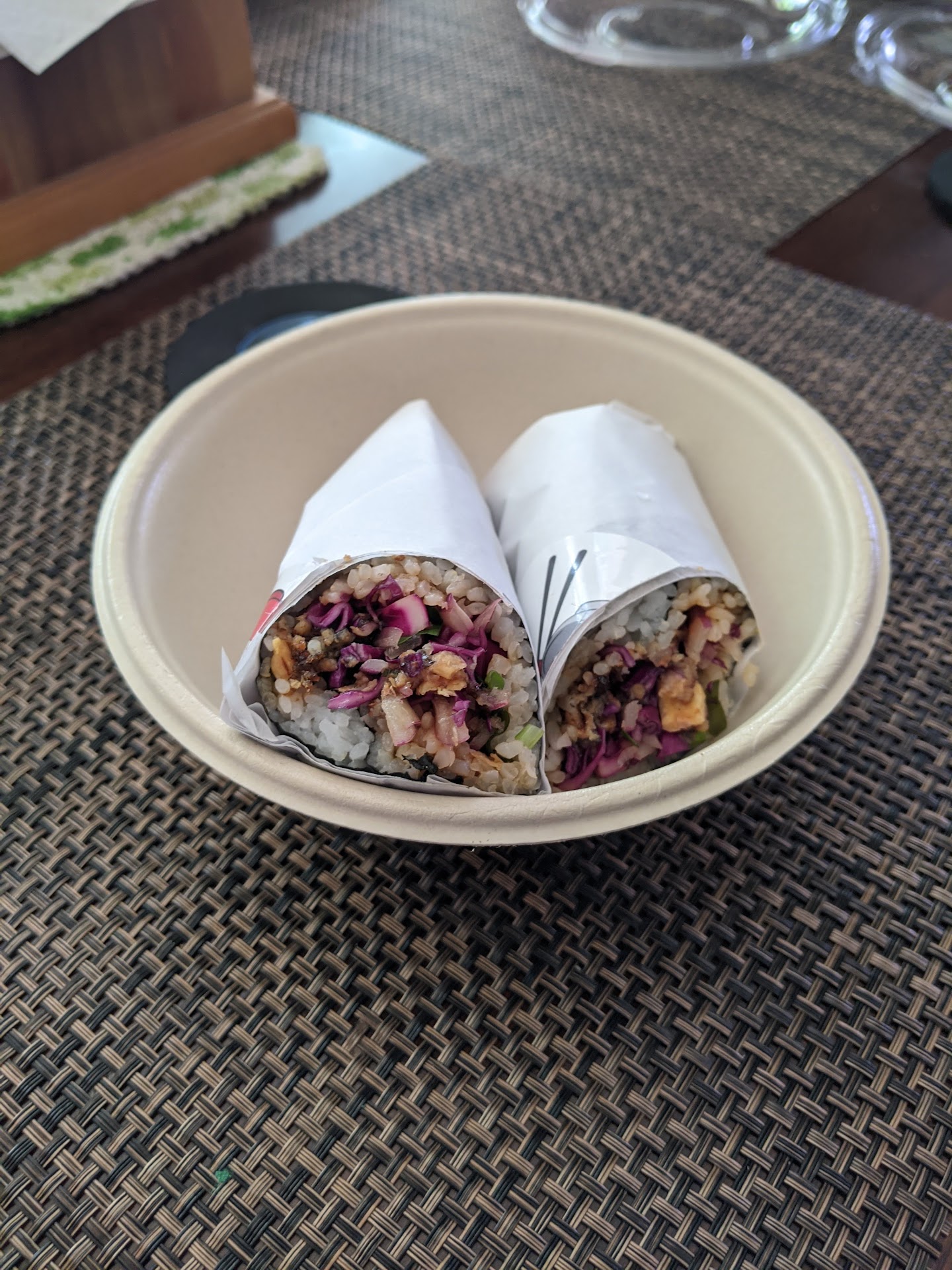 Read moreHad an order today, I had a vegan bowl with white rice, jalapeños, edamame, and the sweet chili pepper sauce, and a side of wasabi..something inside the bowl tasted a bit off..that didn't really taste like a food product..I couldn't tell if it was the rice or something else..I masked the unusual favor with the soy sauce packets given to me and the wasabi..and everything was ok.. The Large mango bubble tea was good but the tapioca pearls at the bottom of the drink seemed extremely gelatinous where I was able to chew the pearls with my tongue and the roof of my mouth.. Overall...