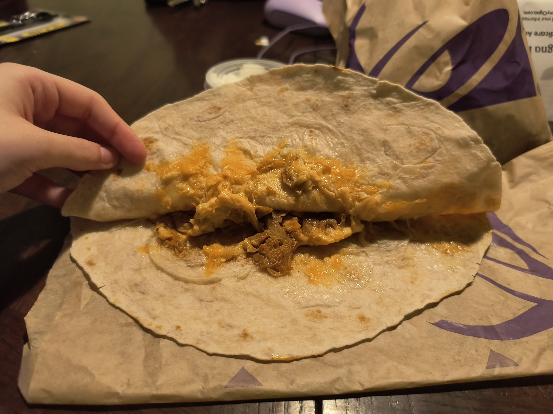 On the side, the quesadilla sauce is a game-changer. Itâs not just an afterthought but a key part of the entire experience. With its creamy, tangy profile, it elevates the quesadilla to a whole new level, complementing the grilled chicken without overpowering it. Each dip into the sauce adds a layer of richness, ensuring you never tire of the taste, bite after bite. If thereâs one thing Taco Bell does exceptionally well, itâs crafting sauces that perfectly balance their menu items, and this quesadilla is a shining example.