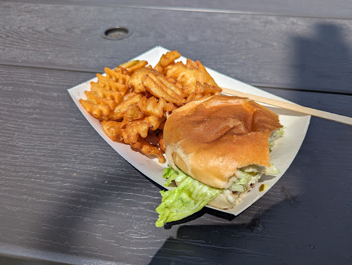 Just skip it. Hard to communicate with employees, beyond underwhelming and overpriced and not worth the time. Save your hard earned money. No views, youre missing nothing. Cannot in good conscience recommend this place. Extremely over priced. 11 burgers (really not great meat, like at all, seemed frozen but should ask) with no fries, sides or drinks. The burgers also do not come with much of what they say they will (bacon and blue cheese burger had barely any bacon or blue cheese. Others had one measly tomato and not very fresh lettuce, no ketchup or mustard or mayo and none offered or put in to go bag) the buns are not bad but too big for the burger, the meat is absolutely nothing to rave about. The "world's best burger" sign just brings tourists in, skip it. This place tries to have a cute ambiance inside but just doesn't work. Their prices do not justify the place. No views of anything, but a road and you're a good walk from the water. You can get a better burger, better meat, better condiments plus a side or a side and a drink for a far better price. Or the same price and a much better burger with what it is supposed to come with. Its just not that great of burgers, for all of them we would pay 7 or 8 dollars tops inc tip/tax for what we got, not 11. Also the waffle fries with chili and cheese complete rip off. Barely any cheese or chili and fries. (The fries are just run of the mill frozen stuff, with the cheap nacho cheese you buy in bulk and chili was so so) 36 dollars including tip/tax for 1 order of chili chz waffle fries and 2 burgers- there were 6 waffle fries w barely any cheese chili or cheese on them and overcooked burgers with too big of buns, burgers do not fit as they're not that big and no sides or drinks and barely any of the condiments they were supposed to come layered with... nope. A family of 5 would be spending 100 dollars here for sides, burgers, drinks and tip for everyone. Not worth it. Not even close. The employees are nice, one was from turkey and the other the Dominican...