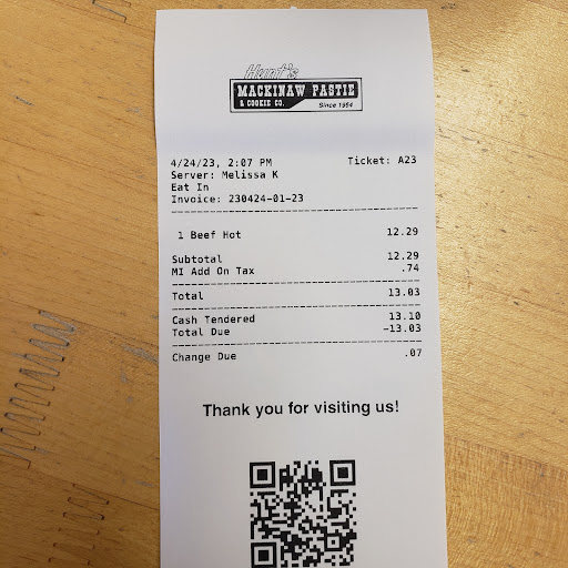Read moreWe drove thru the 'UP' on our way to Petoskey & kept seeing signs for pasties. Didn't have time to go back over the Mackinac bridge, so this place was recommended by a Petoskey local.