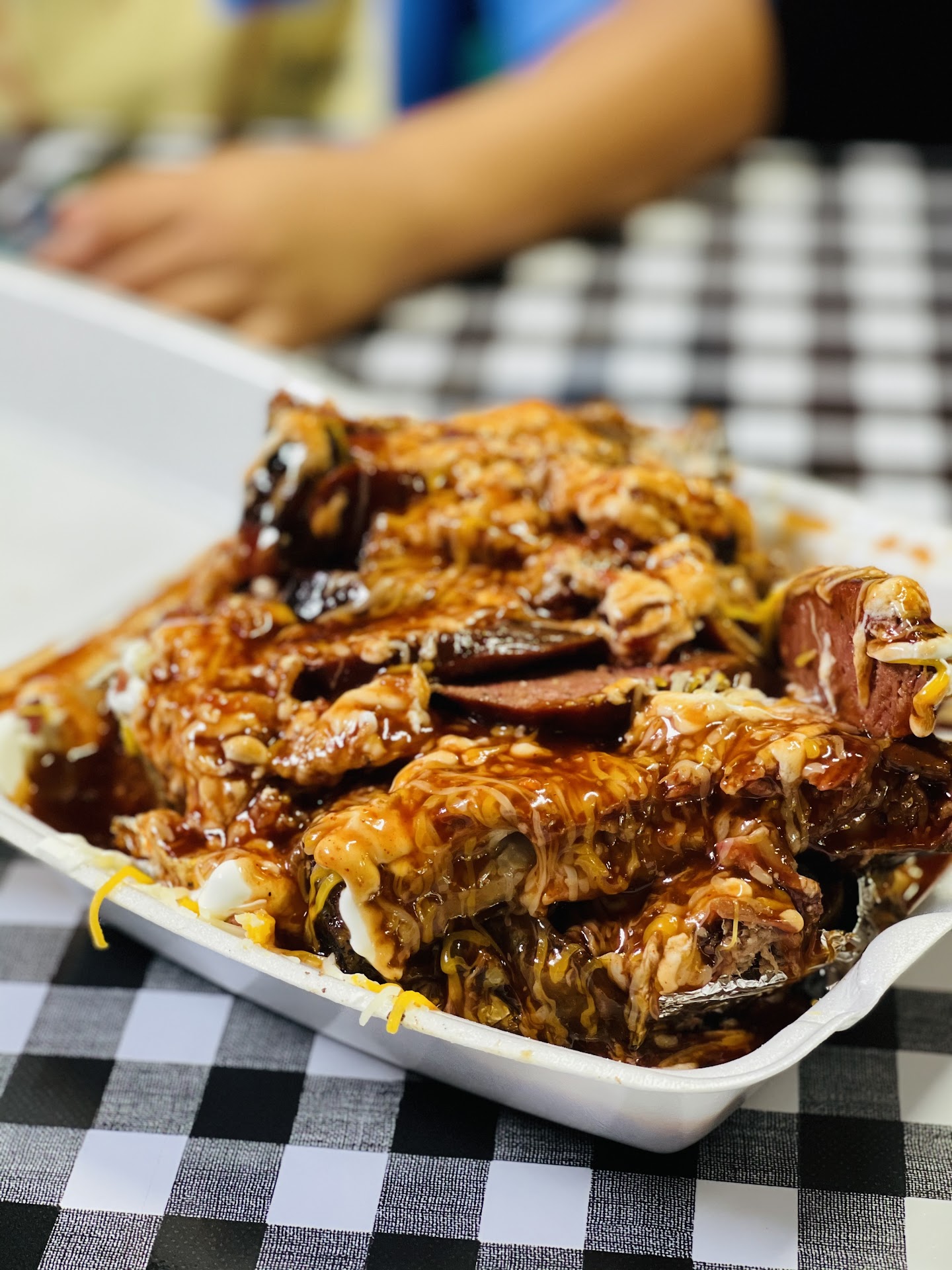 Read moreWe’ve recently moved out here and we’ve been looking for bbq places that are close to our favorites in Arlington. The first time we went, the food was okay but nothing to complain about. We did decide that we would only go when we don’t feel like making our own. Well we wanted some for Father’s Day but he was limited to meat that day, which I can understand with it being Father’s Day. We decided to try the following week, which I soon would regret. I ordered a pound of chopped and sliced brisket plus a bologna sandwich. We spent $80 on food. When I walked in to pick up, I was greeted by a young man screaming, we’ll be with you in just a second, which wasn’t a big deal until I was grabbing my food from the young man that a lady stood up and came up to me asking can I help you. This lady had made eye contact with me and sat across from me the whole time and never acknowledged me. Now back to the $80 worth of food because this is the main reason we will not be back. The brisket was so dry that it was so hard to eat. You could look at it and tell that he is serving the cheapest brisket, it was so disappointing. The sliced brisket was tossed because it was unimaginably tough to eat even with bbq sauce. The macaroni and cheese was not good because the noodles were overcooked. My bologna sandwich was okay but it wasn’t like our previous experience and it was the thinnest slice. This place is inconsistent in many ways between the food he chooses to cook that day to the taste...