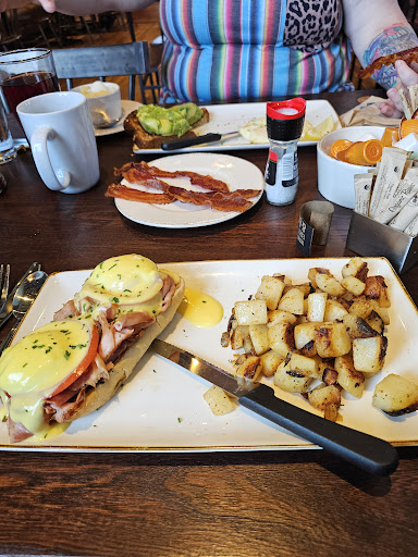 Once seated, we found that the seats hadn’t been wiped, and every set of silverware we were given was dirty. We ordered coffee, but had to send two mugs back because they were visibly unclean. Our waitress was sweet but very inattentive — we had to get our own syrup and coffee creamers, and even asked for plasticware and to-go cups just to dine with.