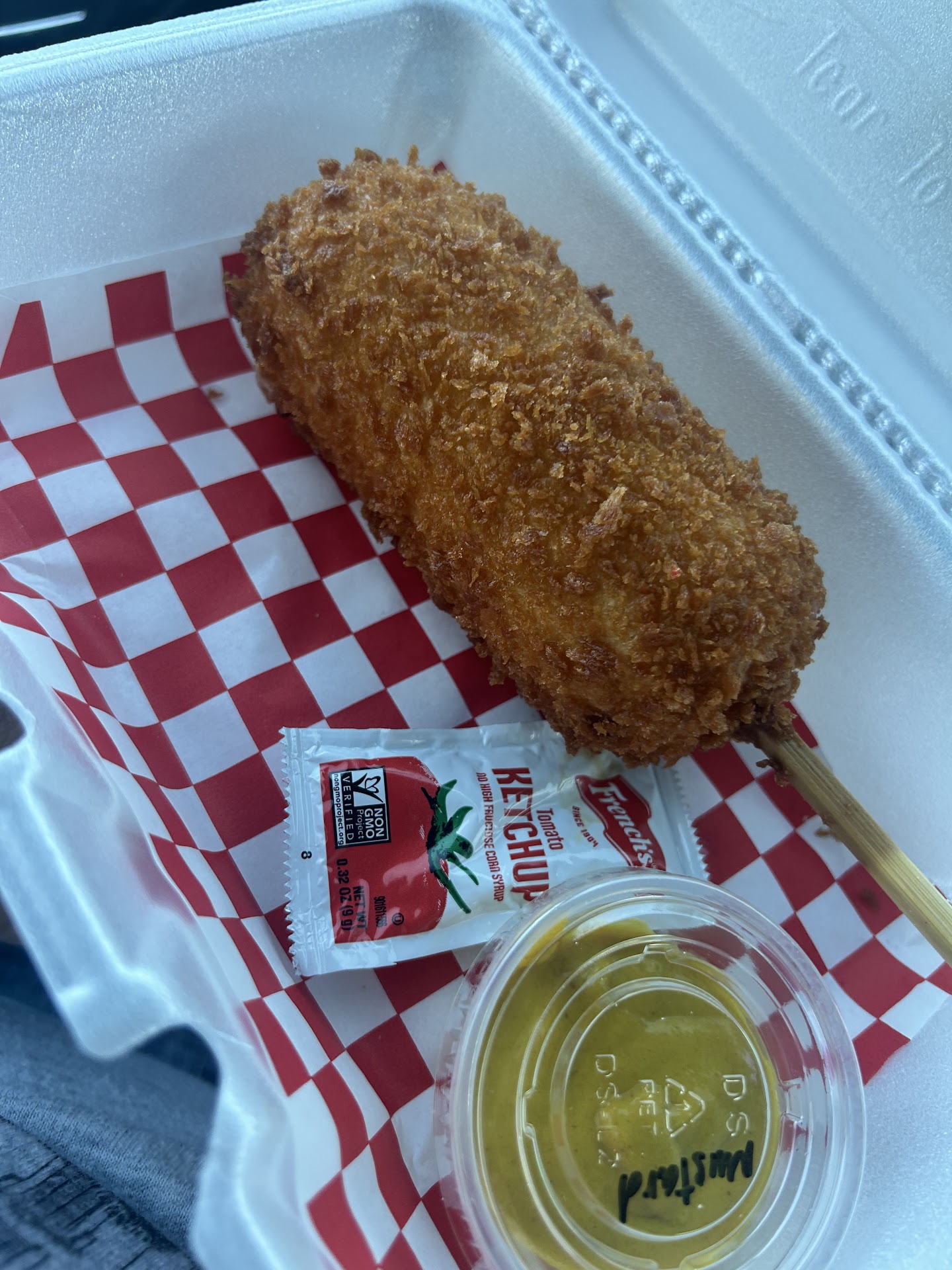 Read moreI’m not one to write reviews at all, I had 3 delicious donuts so nothing wrong there but I usually try to avoid the dogs due to past experience with undercooked kdogs. I decided to try again today and all was well until I saw a hair. At first I thought it was mine so obviously I pulled on it but it was deep fried into the mozzarella dog. Also I realized hair wasn’t mine because I have super curly hair with red tints. I’m not saying that this doesn’t happen because it does. I work in the food industry and have for 4 years so I get it but I just wanted to point out that the kdogs aren’t meeting my expectations sadly. Still have good mochi...
