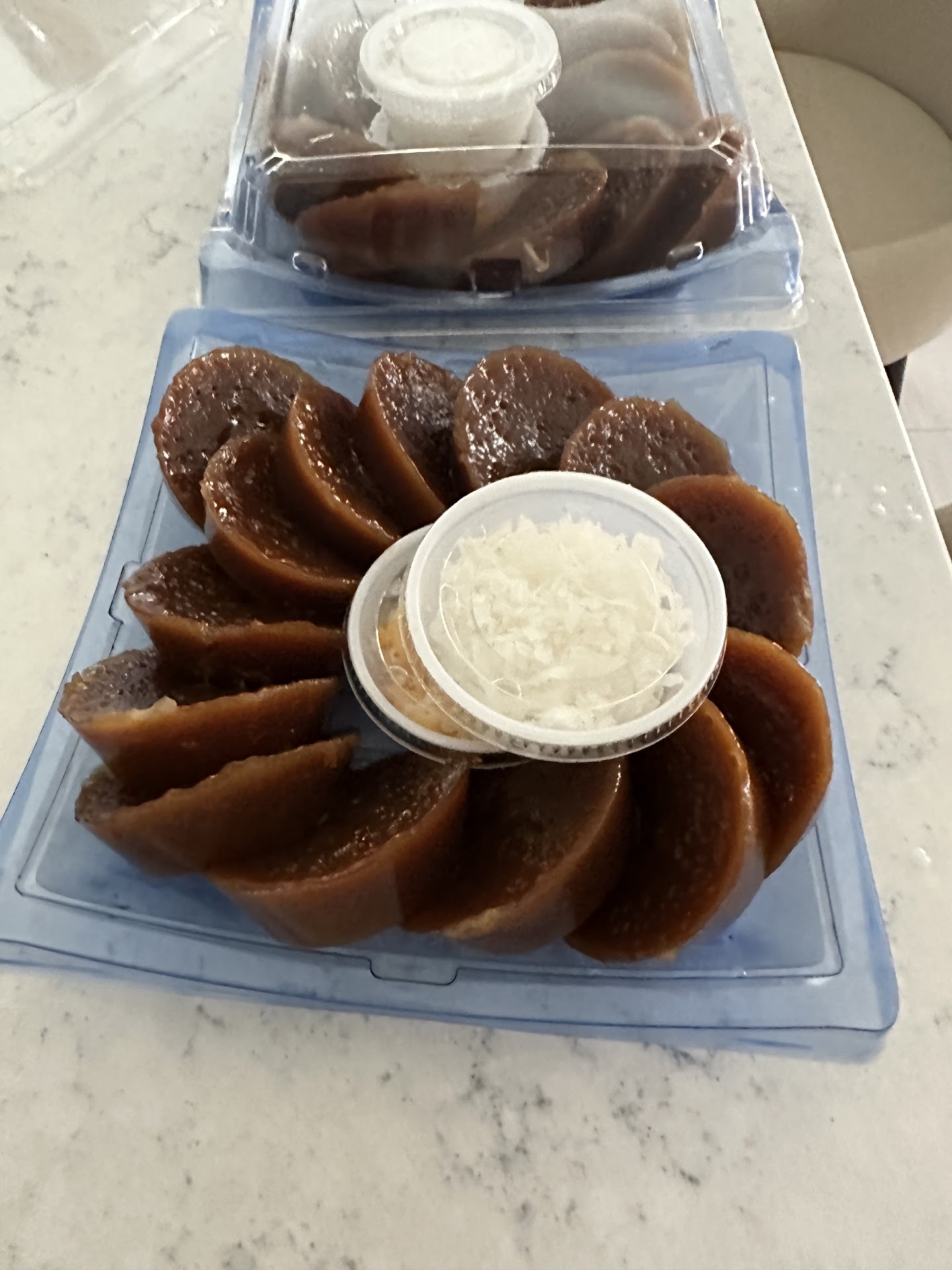 The suman and the kutsinta was out of this world! I especially like the suman because they were huge and it was perfectly sticky and not too sweet. Kutsinta isnāt my favorite Filipino dessert, but it was still delicious regardless. She provided coconut flakes and cheese on the side. I havenāt had the mango cake yet; weāre waiting for Easter to eat it, but it looks so beautiful, it almost brought a tear to my eye.