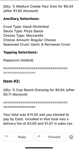 Read moreI placed an online order on the evening of 2/8/2025 that was never delivered. The “track my order” feature within the confirmation email first listed my order as “dropped off at ___PM” and then updated to “On the way” with an estimated delivery time. About 20 minutes after the estimated time passed, I attempted to call the store number for clarification but instead reached a third party customer service call center. I explained the situation to a male employee who then transferred me to an unhelpful woman who brusquely told me that there was a glitch in the system and my driver “should be there sooner or later.”