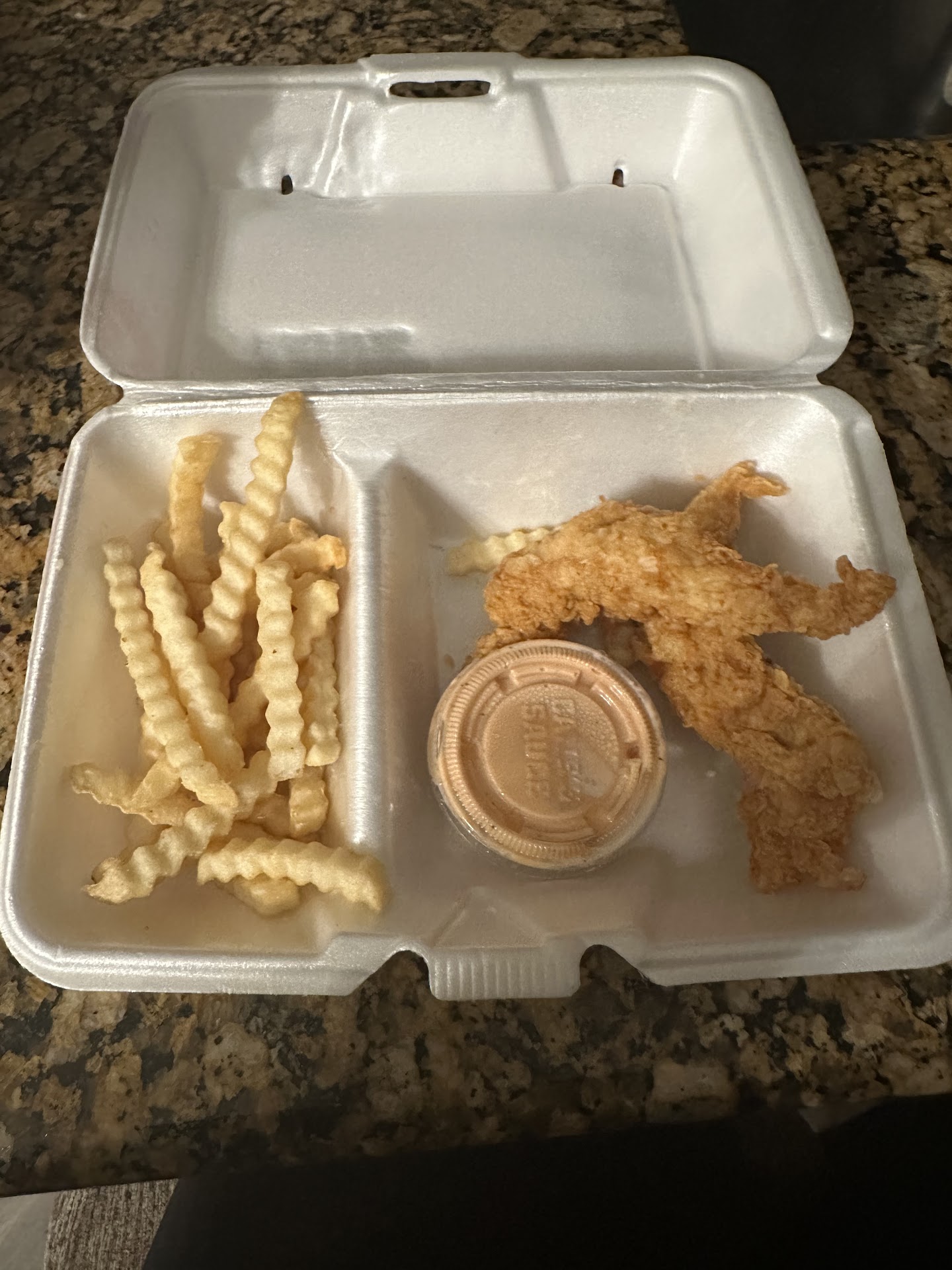 We ordered the Perfect Box with lemonade. The fries were fresh and warm. Texas toast was on point. Chicken tenders were moist, hot and good. Cole slaw is a perfect addition to the meal. Not that crazy about the special sauce. Then again, I'm in minority when it come to it. Lemonade was excellent. No free refill. Free refills on other drinks. The price was right.