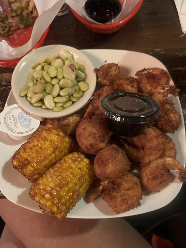We chose shrimp dinners with two sides . She had Caribbean Jerk and I had Coconut, Both were really good, I never had such big shrimp before at a restaurant. I had Lima beans with bacon , fried corn . I can't remember what my friend got in addition to corn . Everything was good and we got the dinner portions which were huge , but it was a great snack while I was on the road .