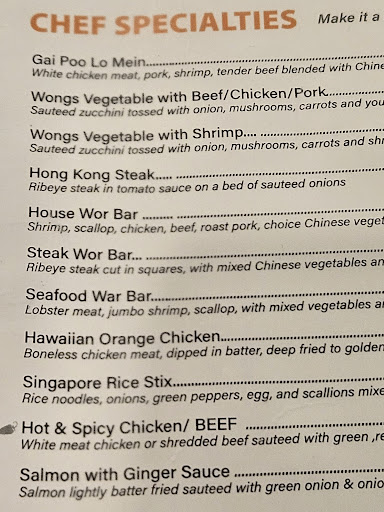 I have been to this establishment many times in the past and have never had a terrible experience until today. My family of four came in and we ordered our drinks. Our waitress didn't seem like she cared to be there. After getting irritated that we asked if they had Coke or Pepsi products, she then brought a large drink in an adult cup to my three year old. After asking her if we could have a cup with a lid, things only got worse. Our food was ordered and we waited for what seemed like ages in a dining room with only two other families dinning. We ordered sesame chicken and two combinations of chicken lo mein. The sesame chicken was cold as if it had just been taken from the fridge, plated and some seeds thrown on top. The chicken lo mein was like it was used from left overs and popped into the microwave and ready for serving. Our waitress played the best game of Houdini while we were there to the entire dining room of only two families. All parties were clueless to where she was and getting very agitated that we could not get her help. While in the meantime another waitress was running around dancing, laughing and making nonsense jokes about billions of dollars. I guess the joke was on us paying customers. Needless to say I'm sure Wongs got many bad complaints today as it deserved. As long as the staff here serves left over fridge food, remains to be unseen and plays class clown I will not spend any more time or money here and I would suggest you...
