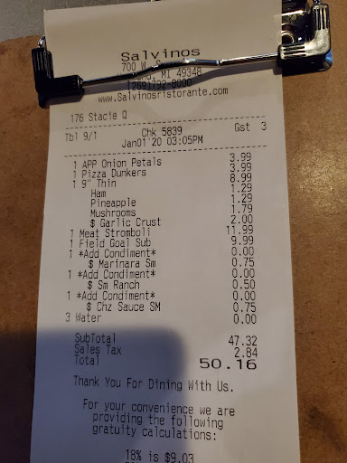Read moreI came in with my family in a Saturday around 12:30 my husband ordered a burger with fries, my son ordered a cheesburger with fries, & we got an extra side of apple sauce for the baby. i ordered the house sirloin with mushrooms and onions, which was supposed to come with 2 sides. I never got my second side, which was supposed to be a house salad, I waited and waited.. it was not busy by any means, there were 3 other tables when we got there, & by the time we left there were 2 more added. We had sat in the sports section, only saw our server to get out drinks, place our order, get our main dishes, & to cash out. I was also never given a steak knife so I had to use a butter knife to cut my steak. I had asked for steak sauce as well, which was never brought out. This was the first time we've eaten here since we moved to Wayland & we will probably end up making our commute to Uccellos in Grand Rapids from now on. I work in a brewery that serves food, so the service was unacceptable for as slow as it was while we were there. This was also the first time we've eaten out in over a year so imagine our disappointment when certain things were never even brought out. I just wanted a manager to know what was going on, because if it's like this when you're slow, I can only imagine how many people will get upset while it's a busy day. I was very dissatisfied with our experience. I just wish there would be been one person present when we were leaving so I could be spoken to a manager at the time. Everyone seemed to want to hide back near...