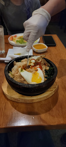 Meh, off night perhaps? But i kind of doubt it. The inside of the place is fine, great saltwater aquarium, faux fireplace on the back wall, comfortable seats. But man, the servers were at my table 4 times before we had turned the page on the menu. Asked for soda water, and were brought $4 bottles of voss, that were already opened, which is offputting on several levels: price, sanitation, reused bottle with bar gun soda water? The food was expensive-ish, not authentic by a loooong shot, and not very flavorful. Sushi was bland mush, rice not well seasoned, no flavor to fish or sauces, i had the king maki and a spicy tuna roll. The bulgogi was just sweet, way too much so, no red pepper or gochujang or anything but sweet and onion in there at all. It was more like japanese niku-don, in the vein of Yoshinoya, than bulgogi, but too sweet. Entrees only come with soup, have to pay extra for salad. We both ordered a side salad and my wife got a larger one with broccoli and other veggies and i got the standard lettyce tomato cucumber mini salad. Wife got the hot stone bibimbop with tofu. No pickled veggies, just steamed zuchini, carrots, etc. And steamed tofu. There was sauce on the side in a squeeze bottle, but that was the only flavor in the dish. Staff were kind of argumentative, might have been my fault because i thought the entree came with salad and soup, but menu actually said salad and rice. Instead of just orderimg me the salad, i got brought the menu to show me i was wrong. So a bowl of veggie bibimbop, 2 sushi rolls of smallish size with patchy rice layers, a plate of bulgogi, and two soda waters was over $80 with tax and tip. I only mention the price because the quality of the food was subpar for the price point. We left most of the bulgogi because it had no flavor, and ordered a consolation pizza for my wife on the way home. Won't...