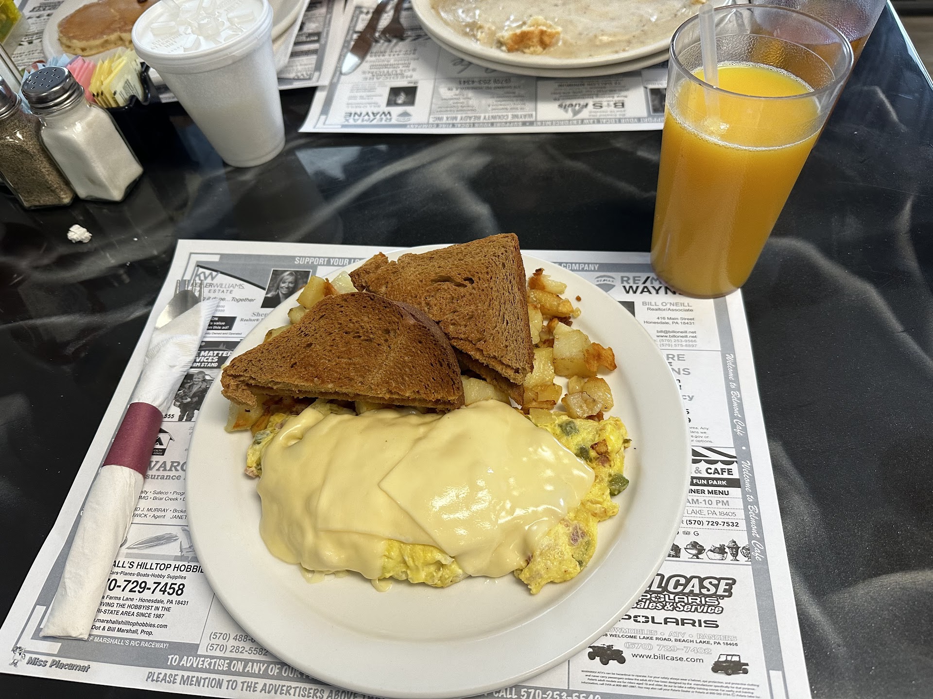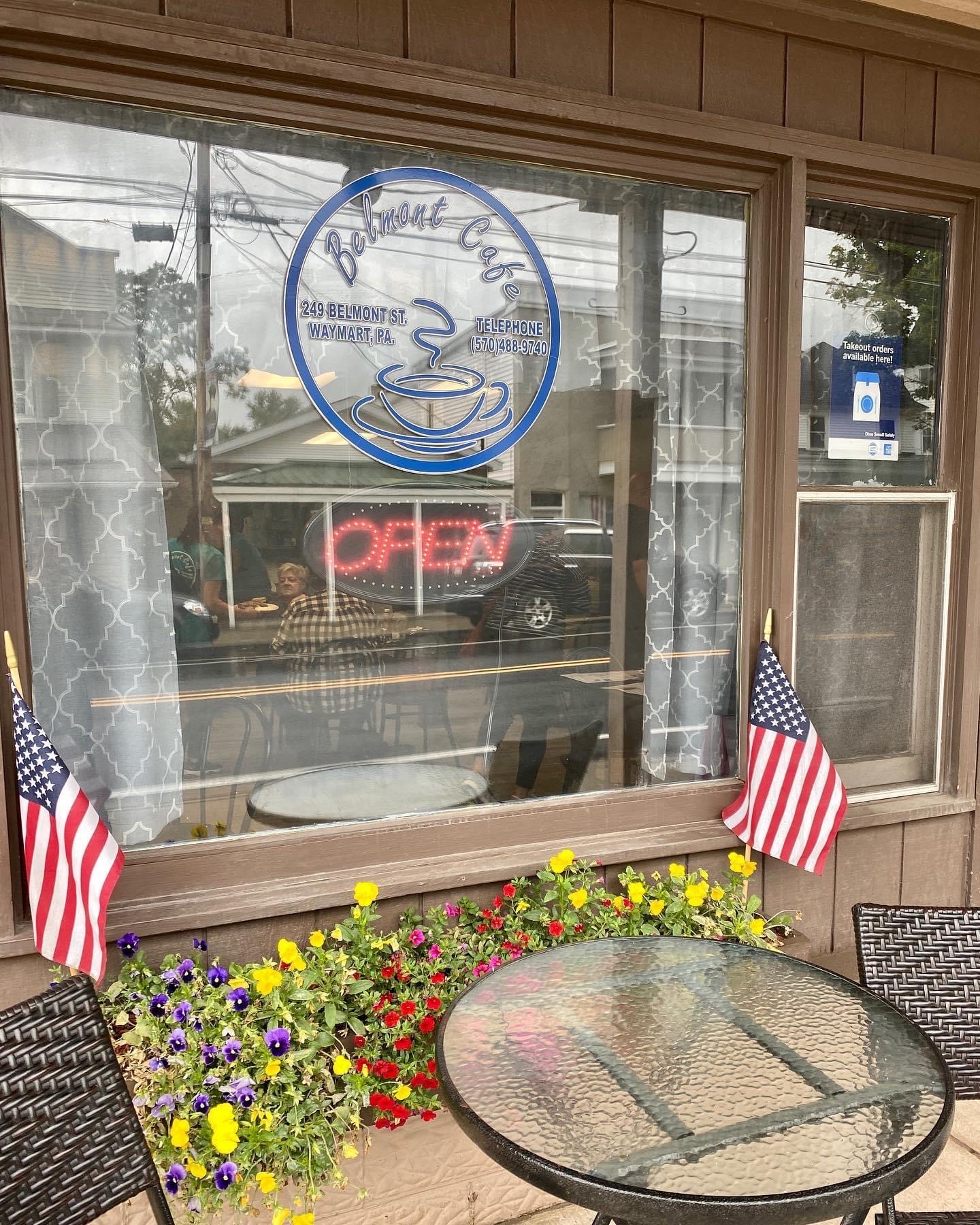 With the 4th of July coming up, I immediately thought of this beautiful breakfast that I had last year during my vacation trip to the Waymart area and had to come on and leave a review. This beauty was an irresistible choice at the Belmont Cafe the second we saw it on their specials menu.
