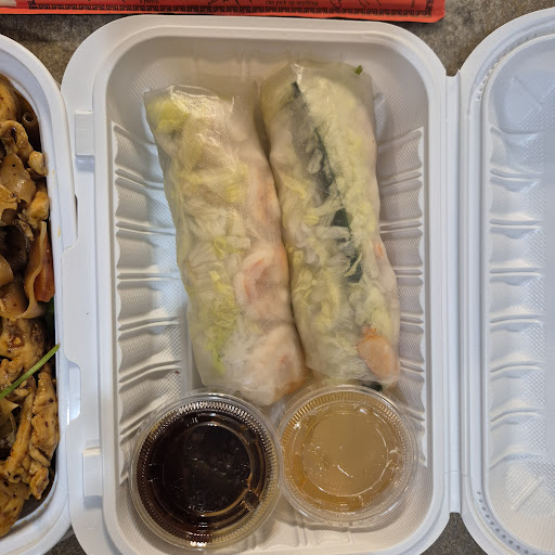I was excited to try this place after reading the reviews. I ordered the Vietnamese Spring roll w/ shrimp. There were 2 rolls and a side of peanut sauce and a side of fish sauce. The spring rolls were fresh as described, but could have used a bit more stuffing. The peanut sauce was nice, but needed more peanut taste. The fish sauce was pleasant in flavor, but i would have preferred it able to stick to the roll like the peanut sauce did. I suppose I could have taken a bite, then a small shot of it? I also ordered the Pad See Ew w/ chicken. They offer a spice level 1-10, 10 being the highest. I rarely ever get what I asked for anywhere else, so I requested a level 12. There portion of chicken alone made this dish worth the money! The flavor was nice, but it lacked something? Cilantro maybe? My spice level I will rank a 7.5. I will return again someday to try another crack at my favorite food on the planet. Service was friendly as stated Atmosphere looked like a pleasant place to eat, although I...