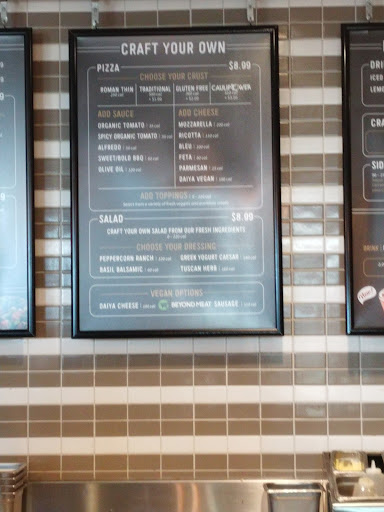 This place is basically Blaze, but locally owned and operated, with better everything, and nicer people (sorry Blaze). First off, my craft your own pizza was phenomenal on its own merits. Toppings were fresh, base was deliciously thin but easy to handle, and I left extremely satisfied. Second, I try to do the vegan thing when possible and I didn't feel like I was missing out on anything here. Full portions of toppings without having to prompt them for more, everything was very tasty and clearly labeled, and the guy who made it (Pizzarista?) was conscientious about avoiding contamination which is great for people with allergies. Even vegan options aside, they locally source as much as they can so you can go ham, literally, and still feel good! Finally, and I do not say this lightly, they have several outstanding hot sauces! I'm the type that would rather run out of coffee than Yucateco (perish the thought either way) so I was cautiously excited when I saw the array of 5 or 6 different types below the napkins ranging from mild to "extreme". But a few dabs on different fingers while waiting for the pizza and I was ecstatic! Mango Bonney, Garlic Habanero, and Ghost Pepper are not to be missed for the spicy enthusiasts. Love that they branched out from the more common mango habanero combo, and after several times of getting burned (haha) I am always impressed by any company that can make a tasty anything with ghost peppers. I would and will go back just for the sauces alone, but oh my they even sell them separately for take home!
