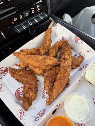 First time visit but not the last. Excellent chicken fingers, lightly spiced and breaded as well as juicy and tender. They have a nice selection of dipping sauces and a gravy that while packaged, is still pretty good. I also got the honey mustard. It's pretty basic. The Ranch is good but the Cayenne Ranch was kind of odd tasting. It might be yogurt based and a little tangy because of it. I just wish that they offered a spicy version of the chicken fingers, then not much more than Ranch would be needed. I had the fried okra as my side, I am a Southerner and never pass up an opportunity for fried okra...lol! It was as good as you'll get other than homemade. My daughter had the fried mushrooms and they were pretty good but I'm not a huge shroom fan so that's about the best I can say about them but my daughter really liked them. My son had the Cayenne Ranch Chicken Sandwich but I didn't have a bite of it. My daughter did though and they both said it was good and they are 10 and 13. My son had the mac and cheese as his side and it was cheesy and tasty to all of us. They have a standard soda machine with Coke products, but even better (at least to me) is they have fresh brewed (as opposed to that nasty instant stuff from the machine) raspberry, peach, sweet and unsweet teas. They also have fresh lemonade and cranberry lemonade. So now I have a place to get my beloved sweet tea other than from home and the bonus is they also have pelletized ice...lol! Overall, we like this place and while it's a bit pricier than I think it should be, but we'll still eat there again and one of us will try the wings next time and maybe one of...