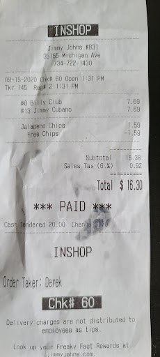 The customer service is awful! Iâve had a manager tell me once if I have a knife, I can cut it myself and explain how he doesnât care about tips because he doesnât get them. That looks real great for this location, very professional. It really sucks because I really love Jimmy Johnâs. Guess Iâm making a longer hike to find a better location.