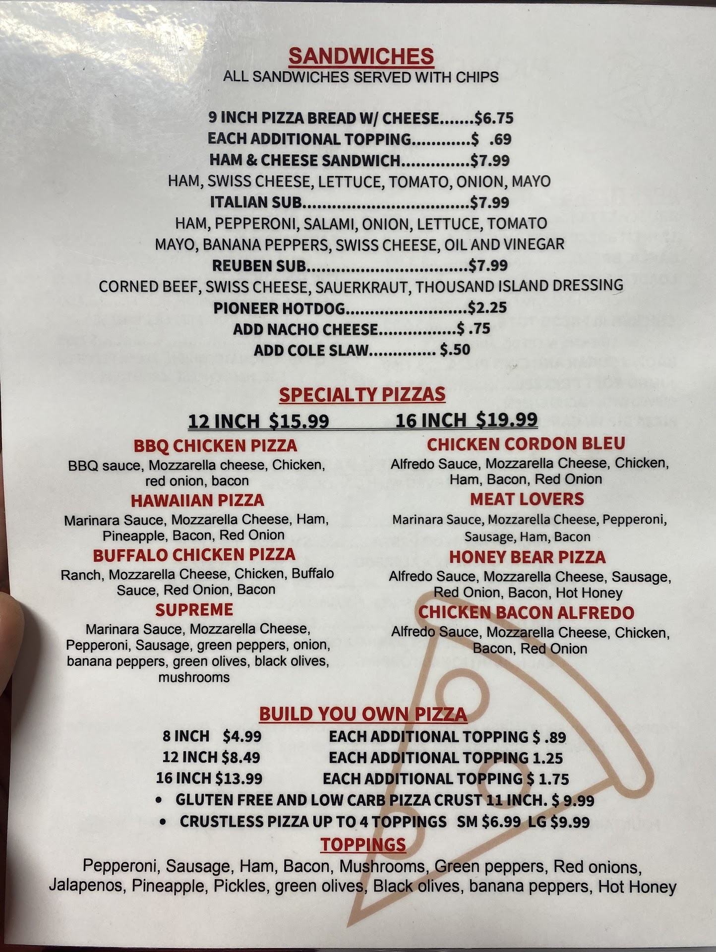 Three days ago ordered a pizza to go we are staying at the motel the pizza was great went back this evening ordered a side salad was charged for a chef salad also ordered bruschetta it would make you puke then the pizza arrived it was greasy even soaked through the crust and we got the same pizza we got three days ago if we wanted a crap pizza we could have went to Gino’s at least...