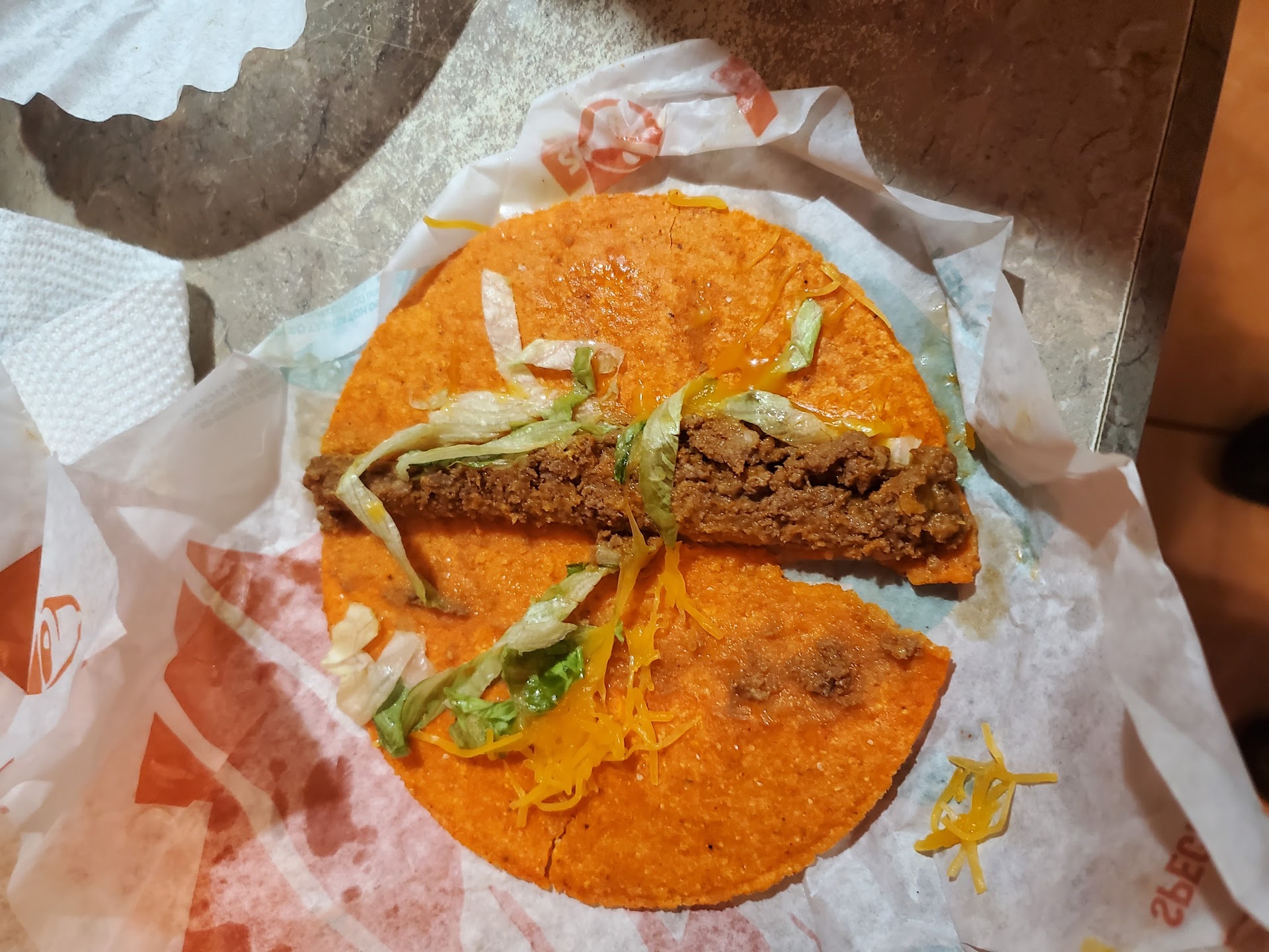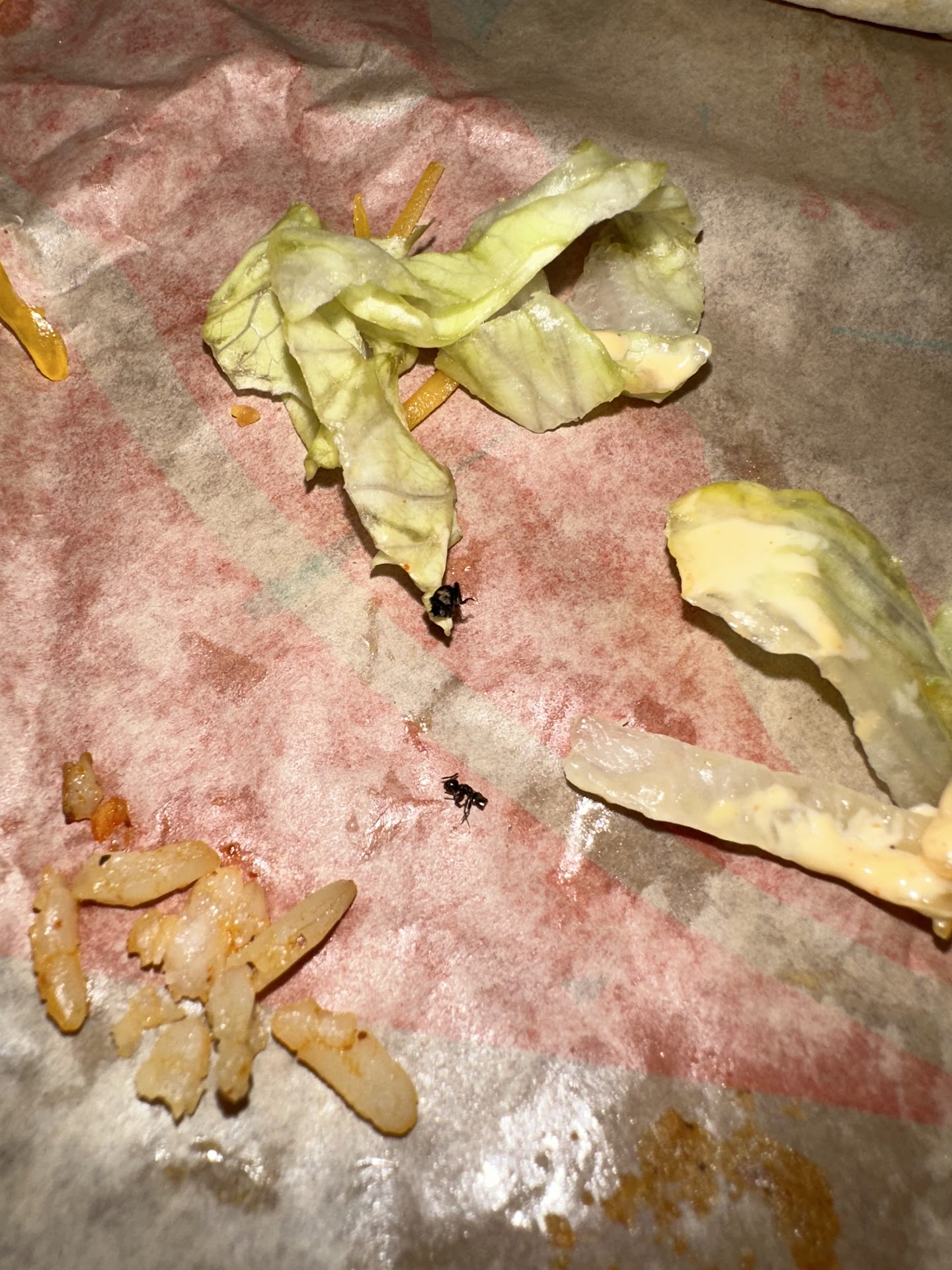 Read moreI normally love this Taco Bell, the staff is always great. But tonight I opened one of my tacos and took some of the lettuce out, only the find TWO BUGS in the lettuce. Originally I had only seen one small dead spider, but when I picked it up to look at it closer, a LIVE ANT JUMPED OUT of the lettuce. I am absolutely disgusted and mortified by not only the bugs but by the fact that I had already eaten a couple bites of that taco, and the entire rest of my order BEFORE I noticed bugs had literally been living in the taco. Not sure if this is an issue with the lettuce or with the preparation area but it’s so insanely nasty. i dont plan on coming to this taco...