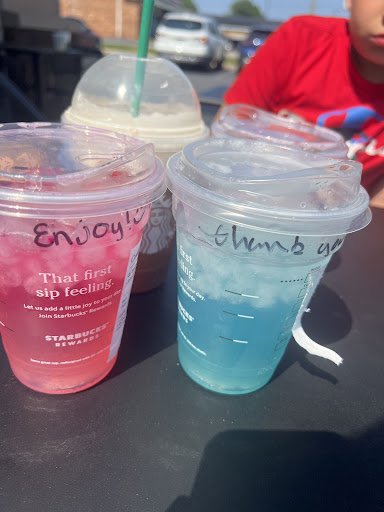 Ā Ā Ā Read moreI stopped by here to load up on the caffeine and to get my dog a treat before continuing on my roadtrip back to Alabama. This location is ideally located with easy access from and to the interstate. The facility is clean and the grounds are well-maintained. I utilized the drive thru and the service was fast from placing my order to picking it up. I ordered a pup cup for my pooch and asked for a Trenta (yep, 31 glorious ounces) of iced coffee with 3 shots of espresso and vanilla flavoring. I think that's called a Red Eye, if I'm not mistaken. The nice folks working the drive thru carefully listened to my request and modifiers. They made recommendations for cream and sweetener. My virtual gift card worked flawlessly at the pickup window and the wonderful barista said hello to my dog while handing me his pup cup. The iced coffee/espresso blend was perfectly mixed and caffeinated my soul. The next time I need a pick me up on the VA-AL route, this will be...