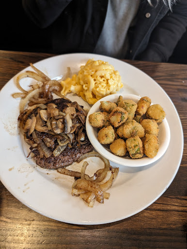 Ribeye steak had the texture of like a pork chop. Remind me the ones you see come from like a waffle house that are pre-pack in plastic. Baked potato wasn’t too bad you could tell It had been cooked much earlier in the day. Salad was average. Place was full on a Saturday night, quite surprised with the quality of food being below average. We walked in the place and it was as quiet as can be …no music playing other than a front speaker by the front door that buzzed loudly.