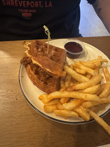 Read moreI really wanted to like this place. The atmosphere was very nice (really good AC unit - so you may want to bring a jacket if you can't stand cold air blowing on you) - decor was impeccable - clean, nice bathrooms. Good service - a little slow, but we weren't in a hurry and didn't really mind. The food was the kicker - the menu sounds great but the reality is, they over season themselves out of a 5* review. My mom loves fried green tomatoes and maple bacon - but there was a very strong pesto on the sandwich and she couldn't get past two bites. Our appetizer dish was our fave (4* for the pork egg rolls). I had the chicken and waffles sandwich, which isn't really a sandwich as it's really thick. It was good but make sure you get the sauces on the side...chicken was a little over-cooked/stringy, but good flavor. It had two sauces - one was super hot and spicy and the other was just syrup. I had the rosemary fries - which were good, but shouldn't require a $2 upcharge from regular fries. They were a bit heavy on the rosemary - I didn't mind, but my mom tried it and felt it was overpowering. The tortilla soup (not sure of the name) was good to me, but did have a lot of cilantro. I want to come back and try the dinner menu. I feel like this place has great potential but they definitely need to scale back the spices. They are supposed to enhance your food, not take them over. My advice is to ask for anything you can to be on the side so you can determine your volume of flavor/spices.