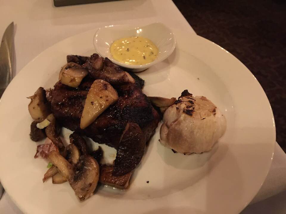 Food was standard. The only ribeye on the truncated menu is a 22 oz. Could have a few more sizes of that to...